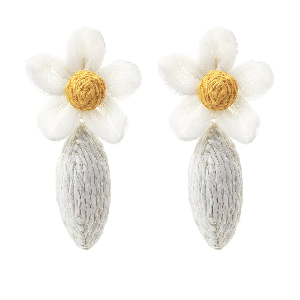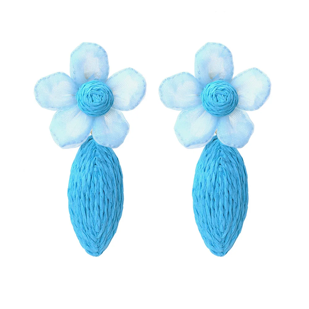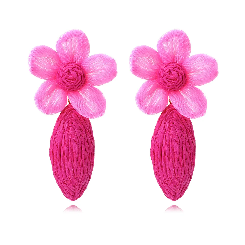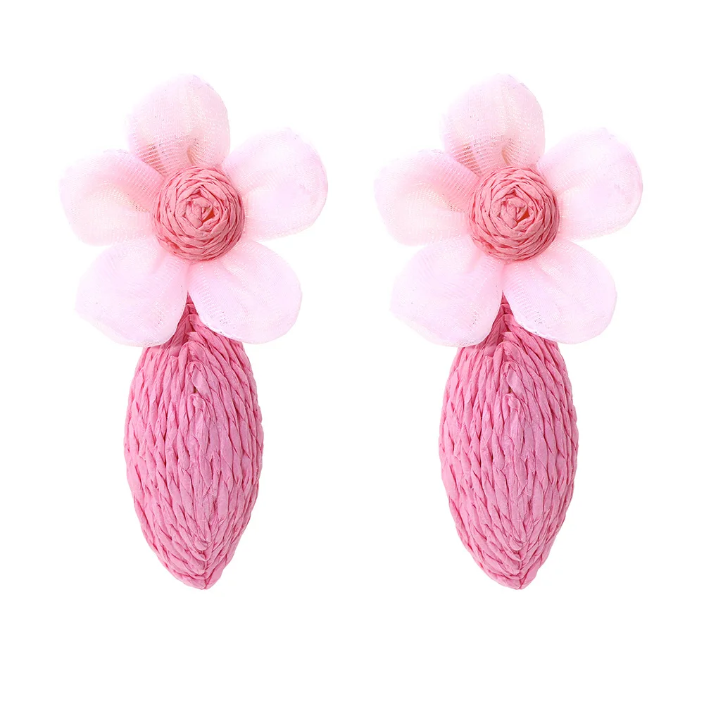 Metal Raffia Oval Resin Flower Dangle Earrings for Women New Simple Charm Design Jewellery Party Accessories