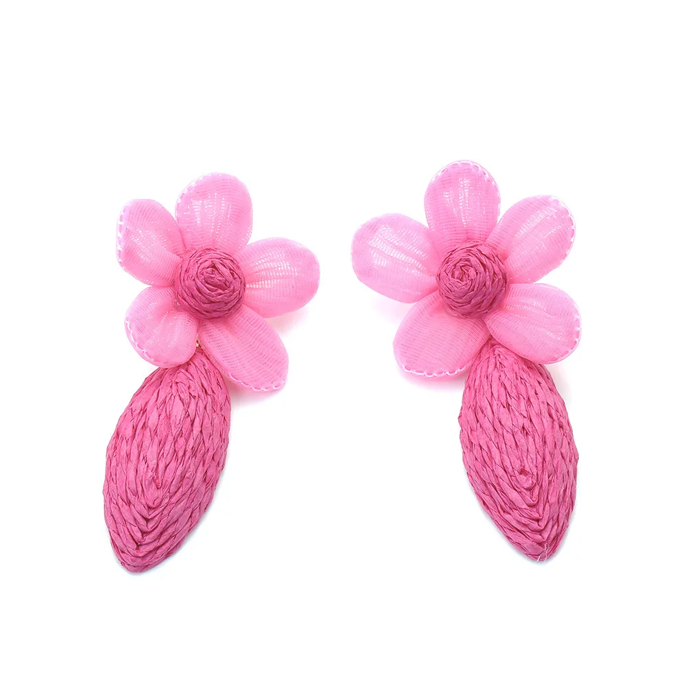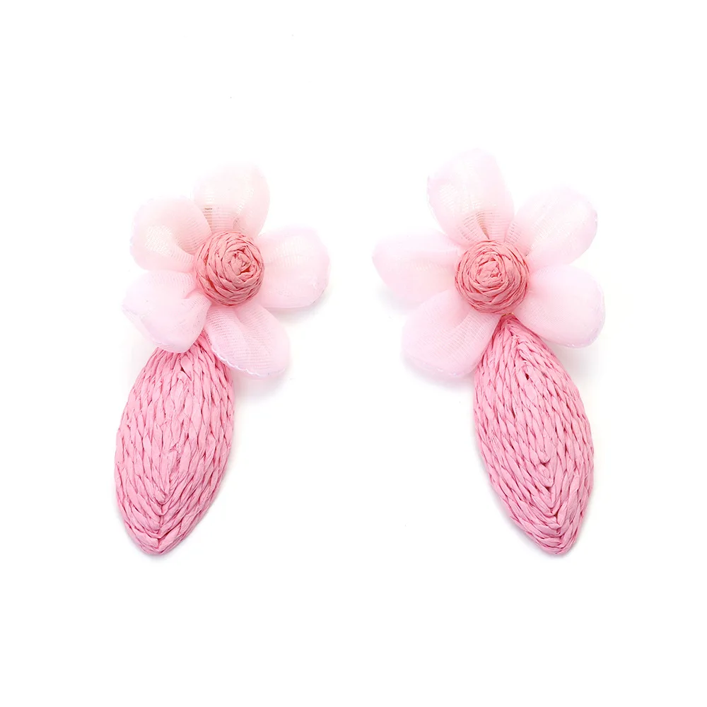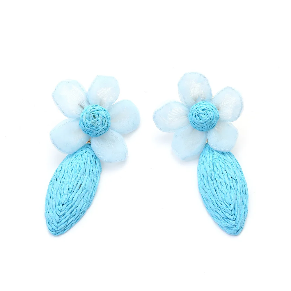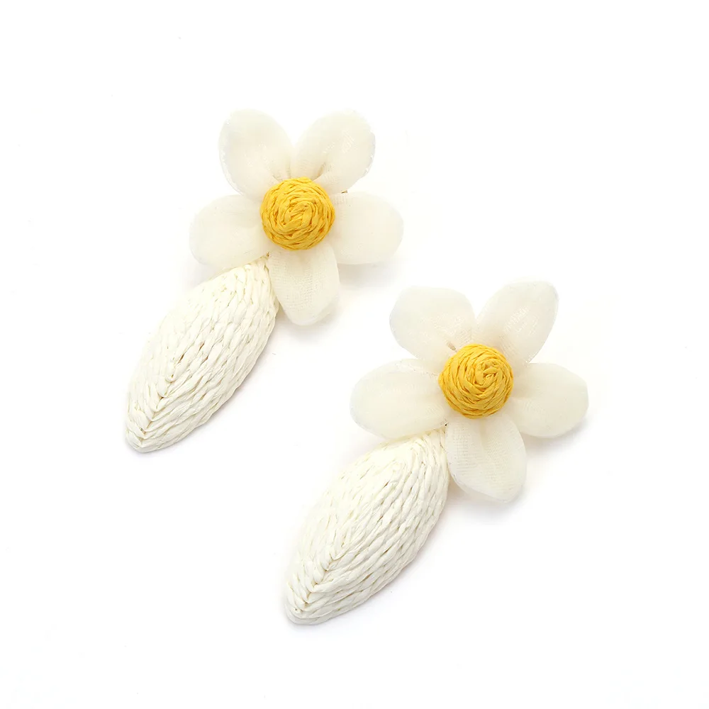 Metal Raffia Oval Resin Flower Dangle Earrings for Women New Simple Charm Design Jewellery Party Accessories