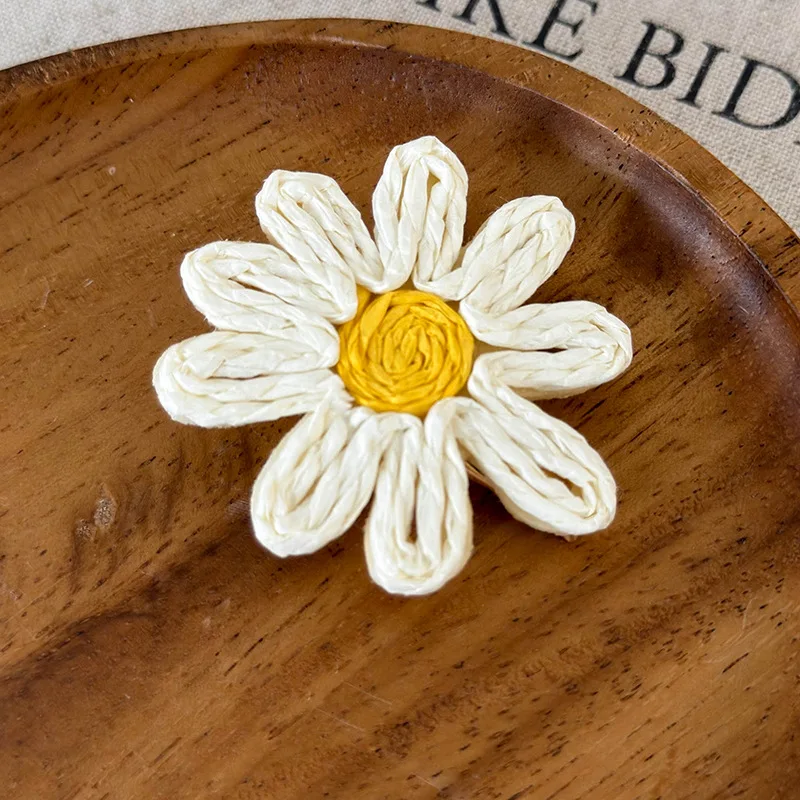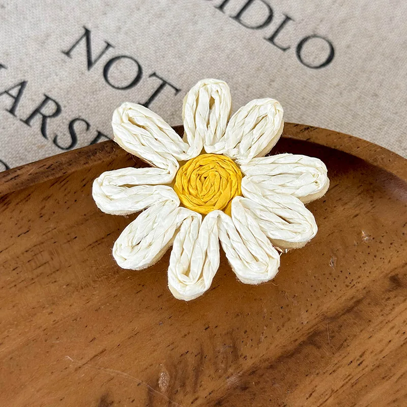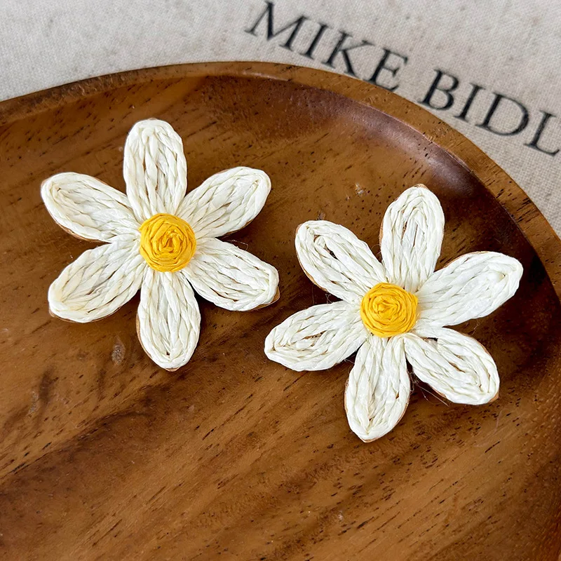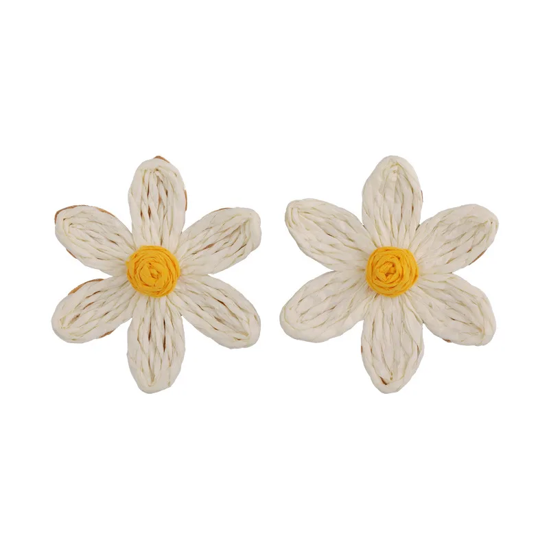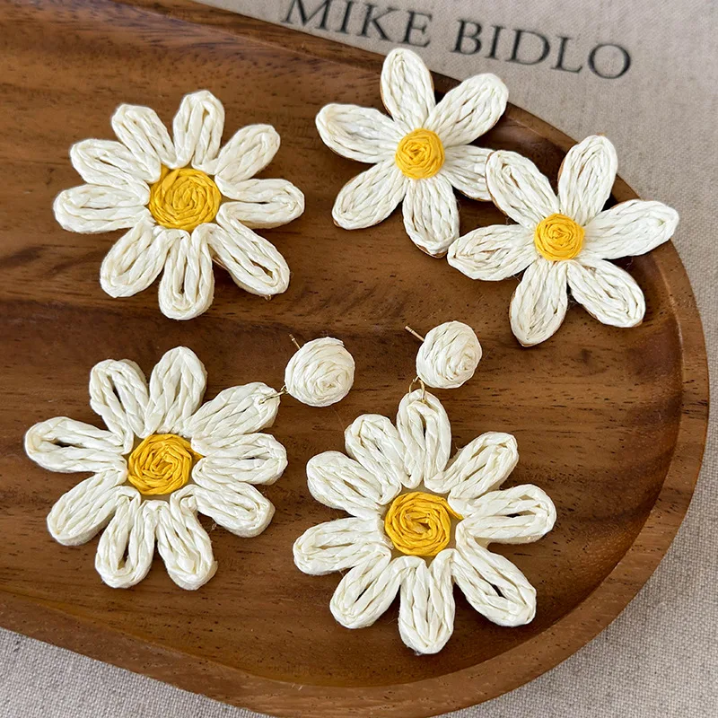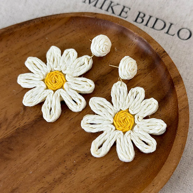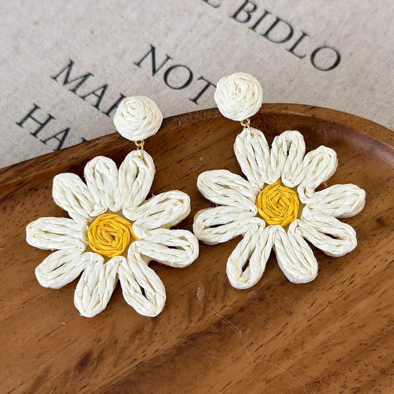 Minar 2024 Summer New White Color Rattan Knit Daisy Sunflower Long Pendant Drop Earrings for Women Statement Holiday Jewelry