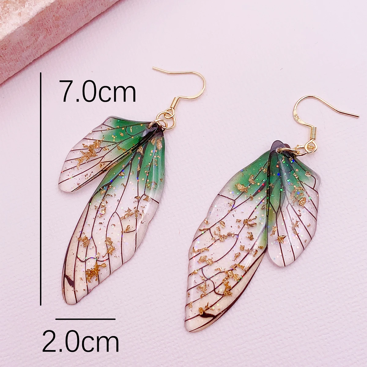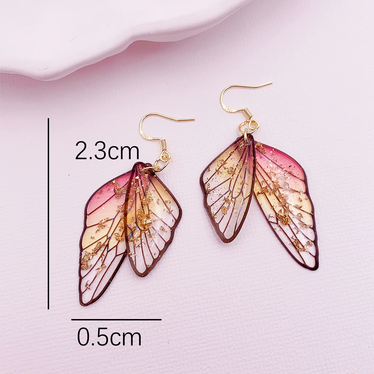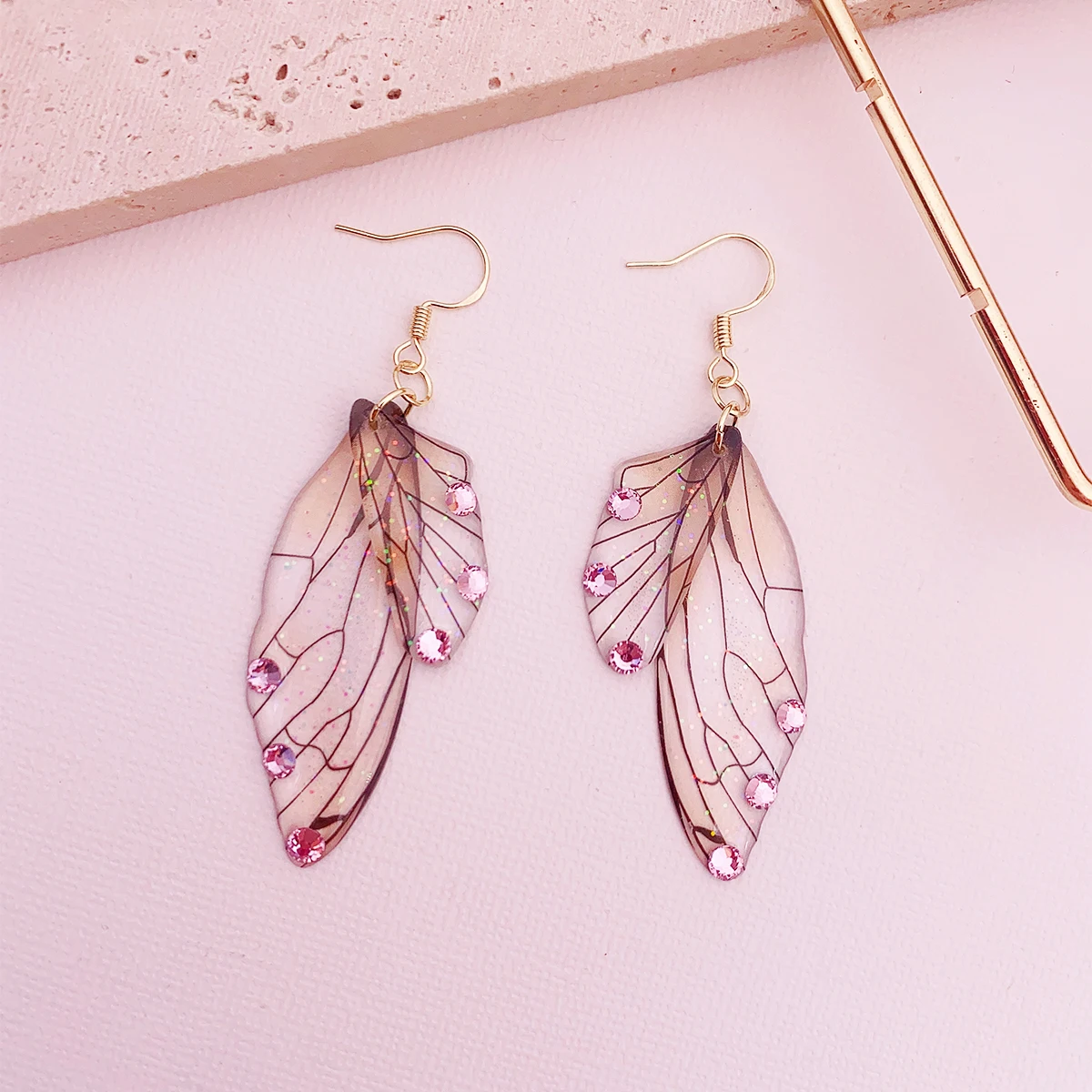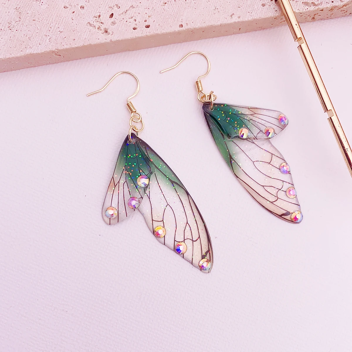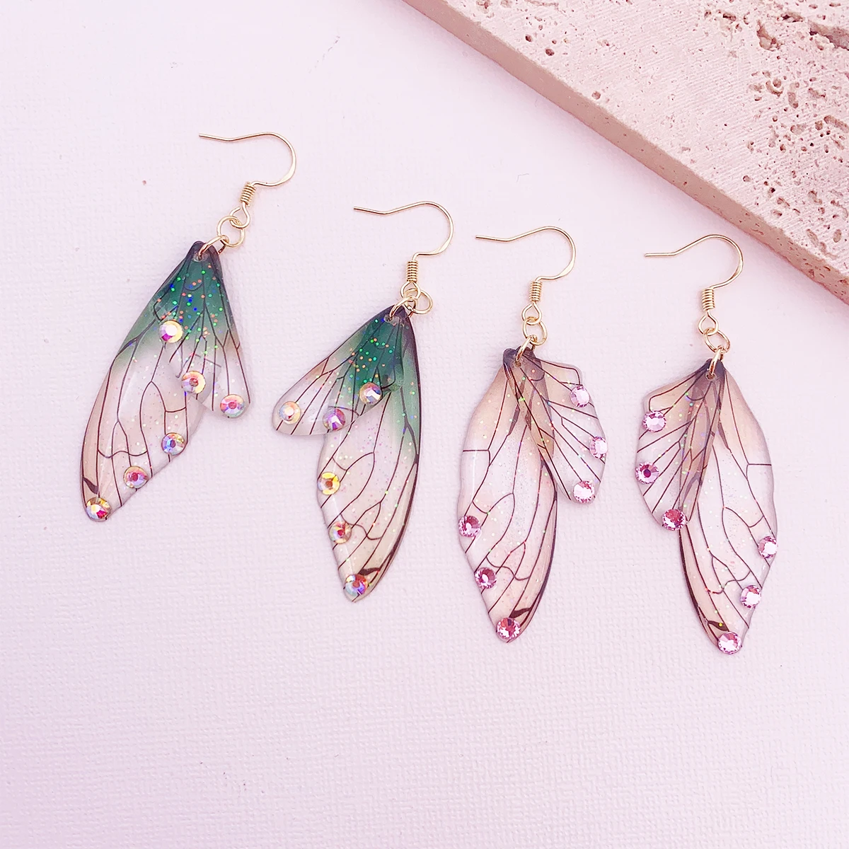 Minar Fairy Clear Gradient Color Resin Wings Dangle Earrings for Women Wholesale Copper Rhinestone Butterfly Pendant Earring