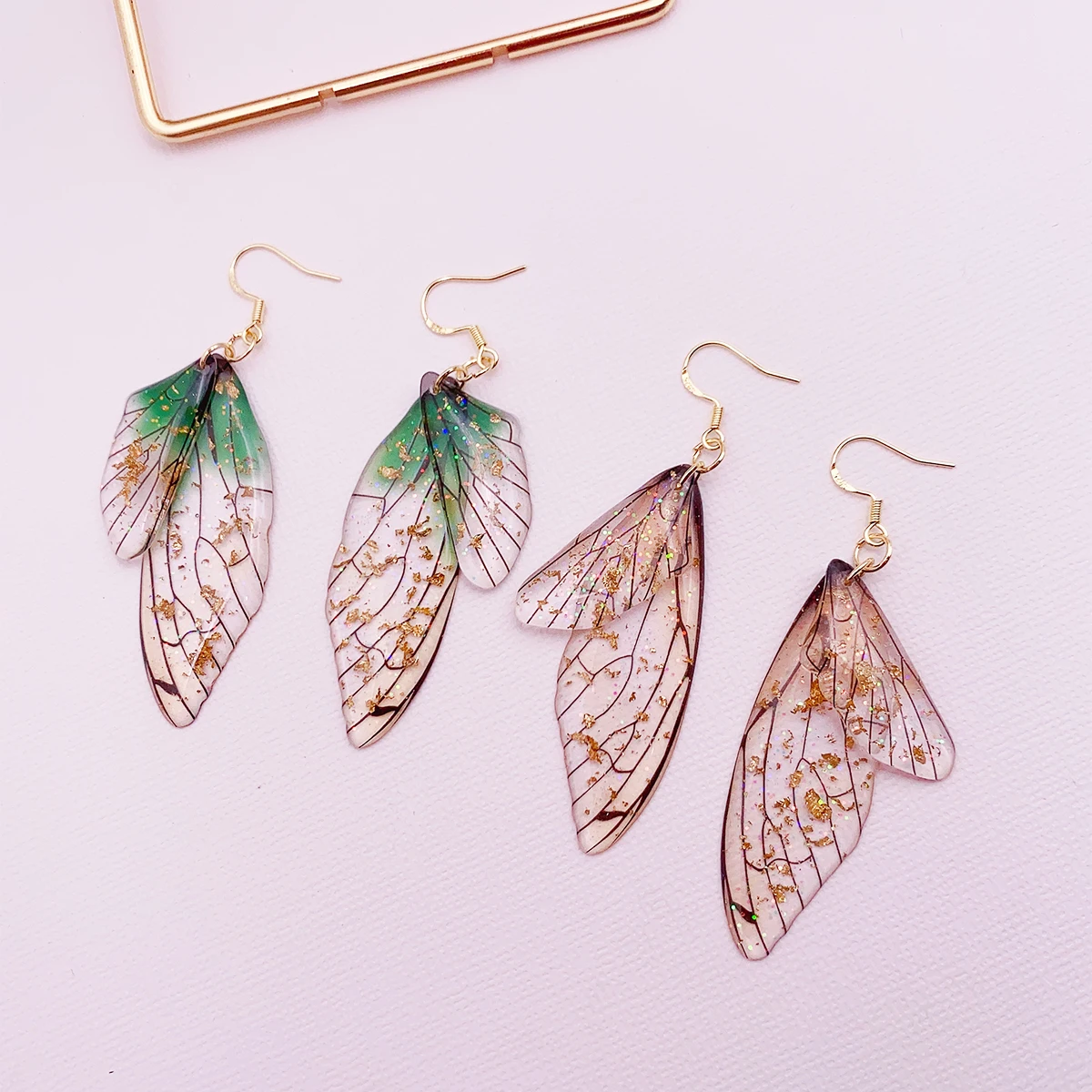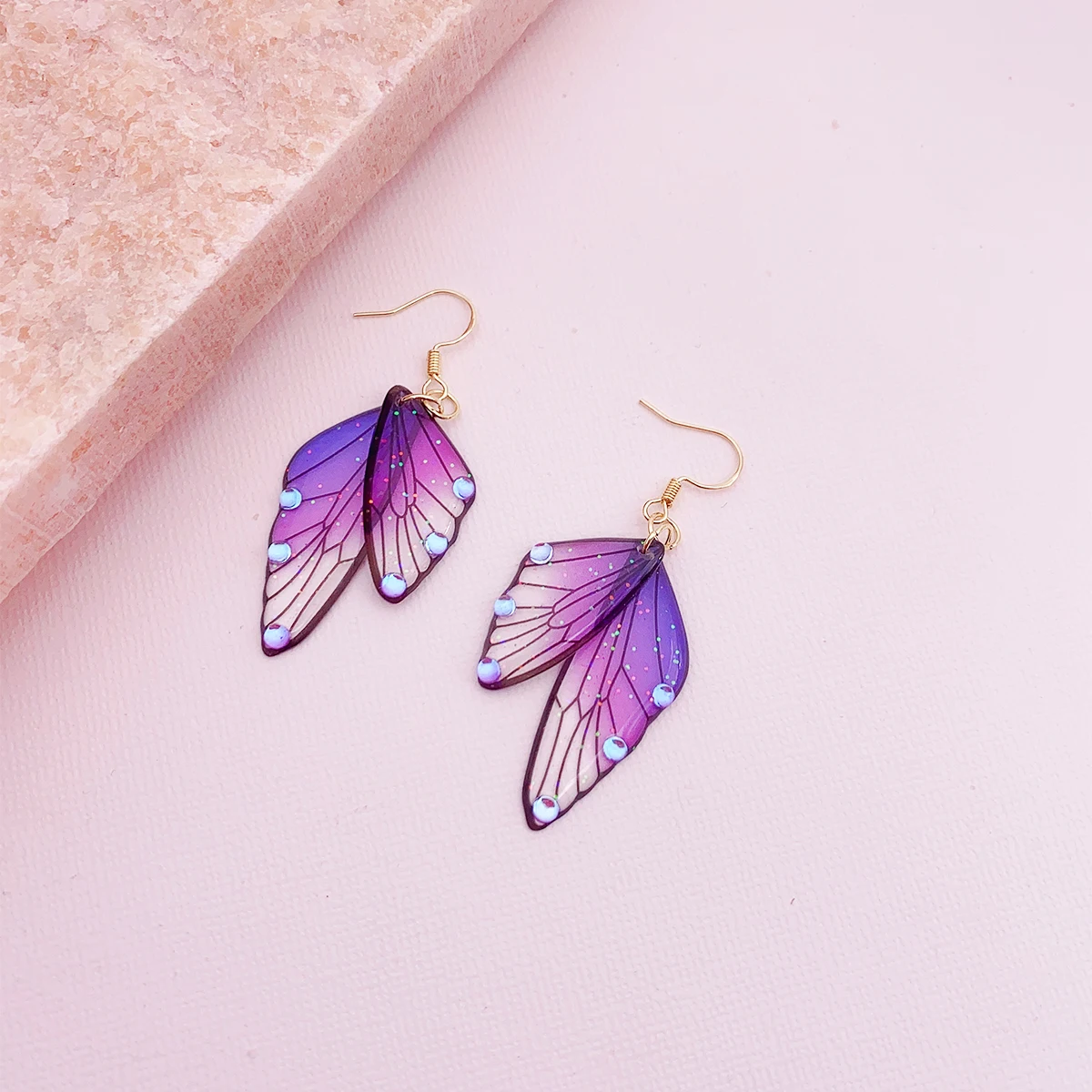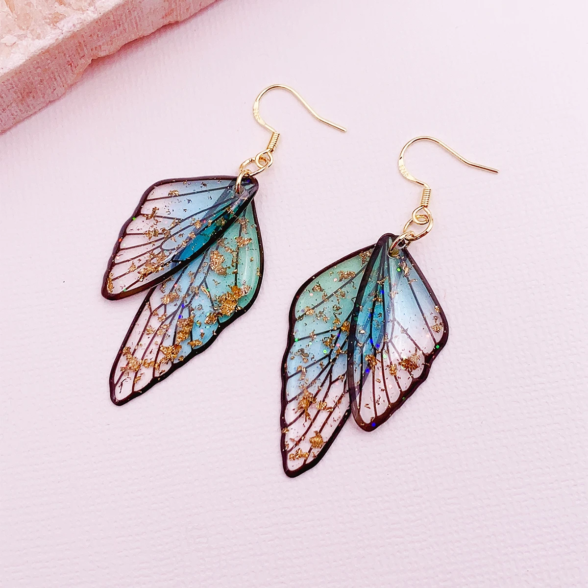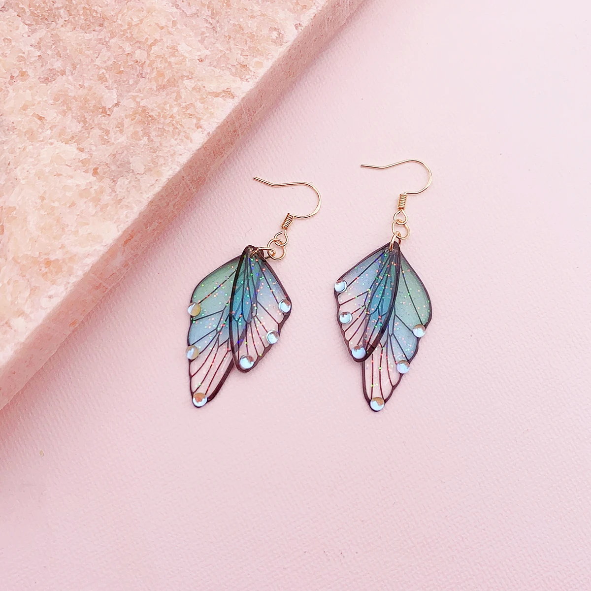 Minar Fairy Clear Gradient Color Resin Wings Dangle Earrings for Women Wholesale Copper Rhinestone Butterfly Pendant Earring