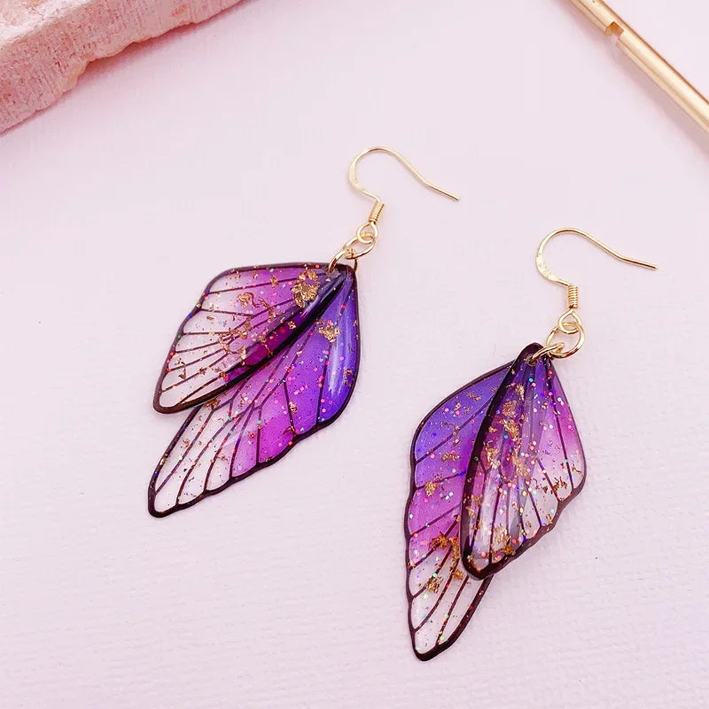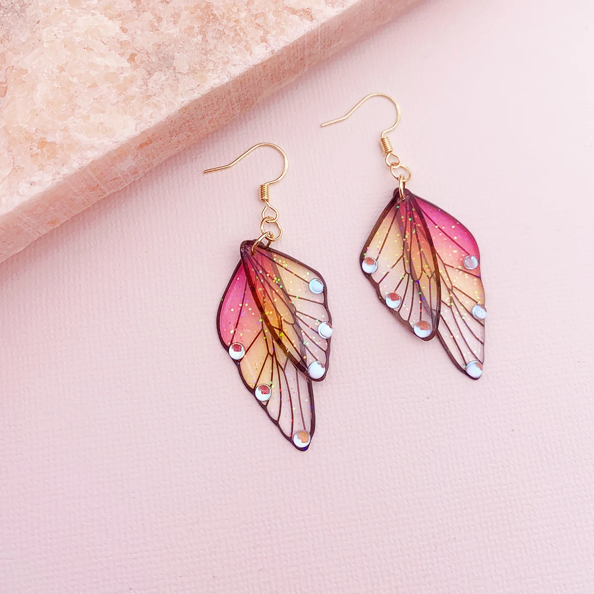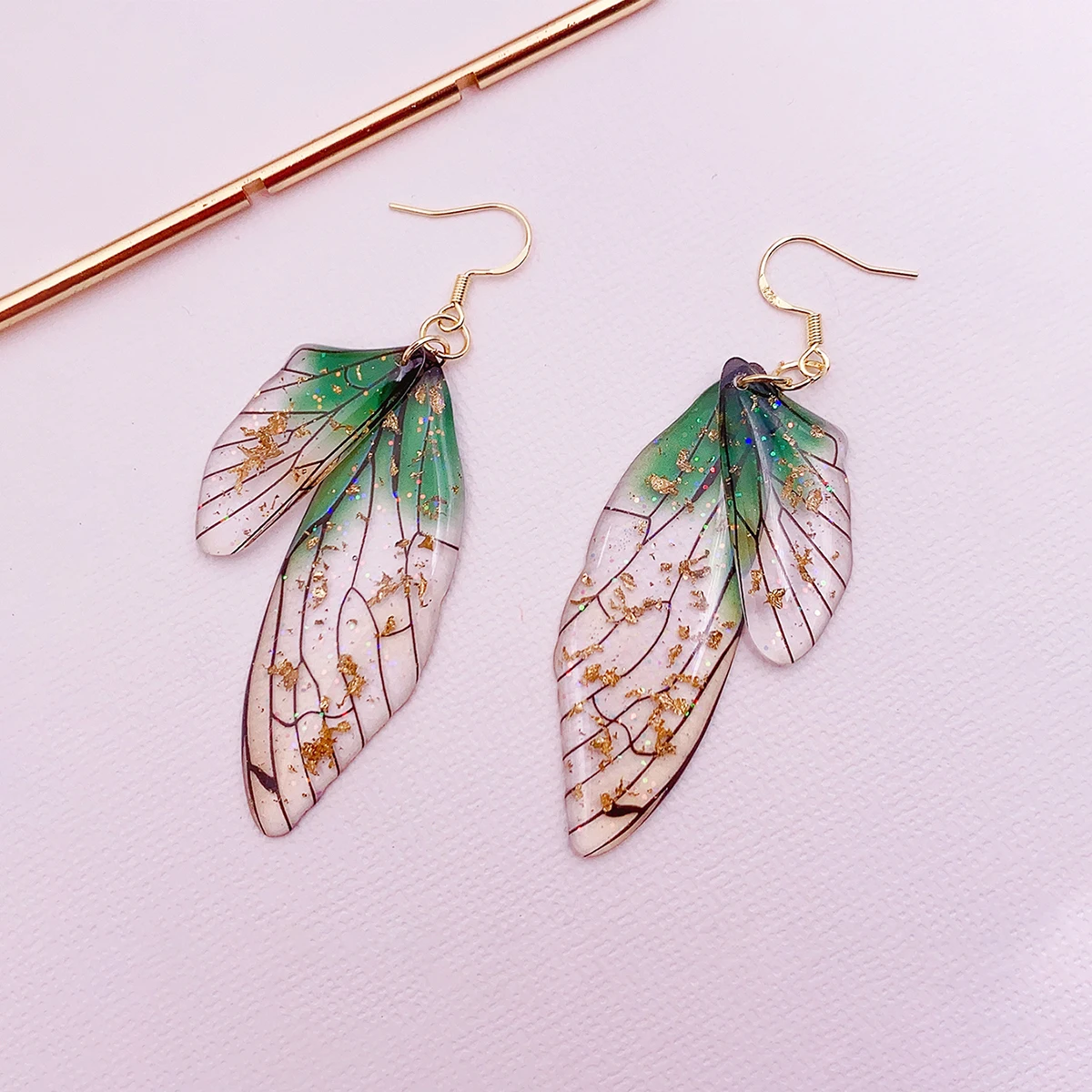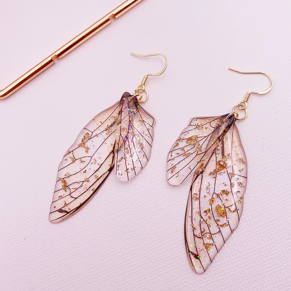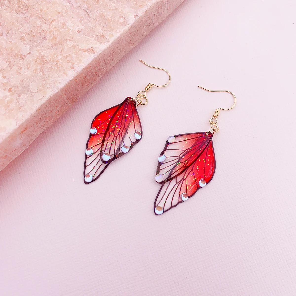 Minar Fairy Clear Gradient Color Resin Wings Dangle Earrings for Women Wholesale Copper Rhinestone Butterfly Pendant Earring