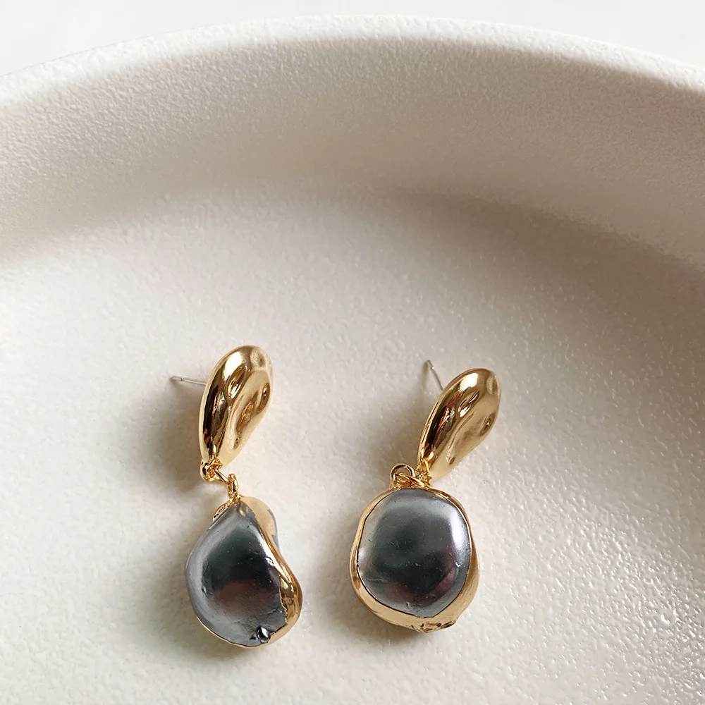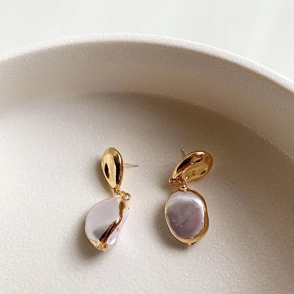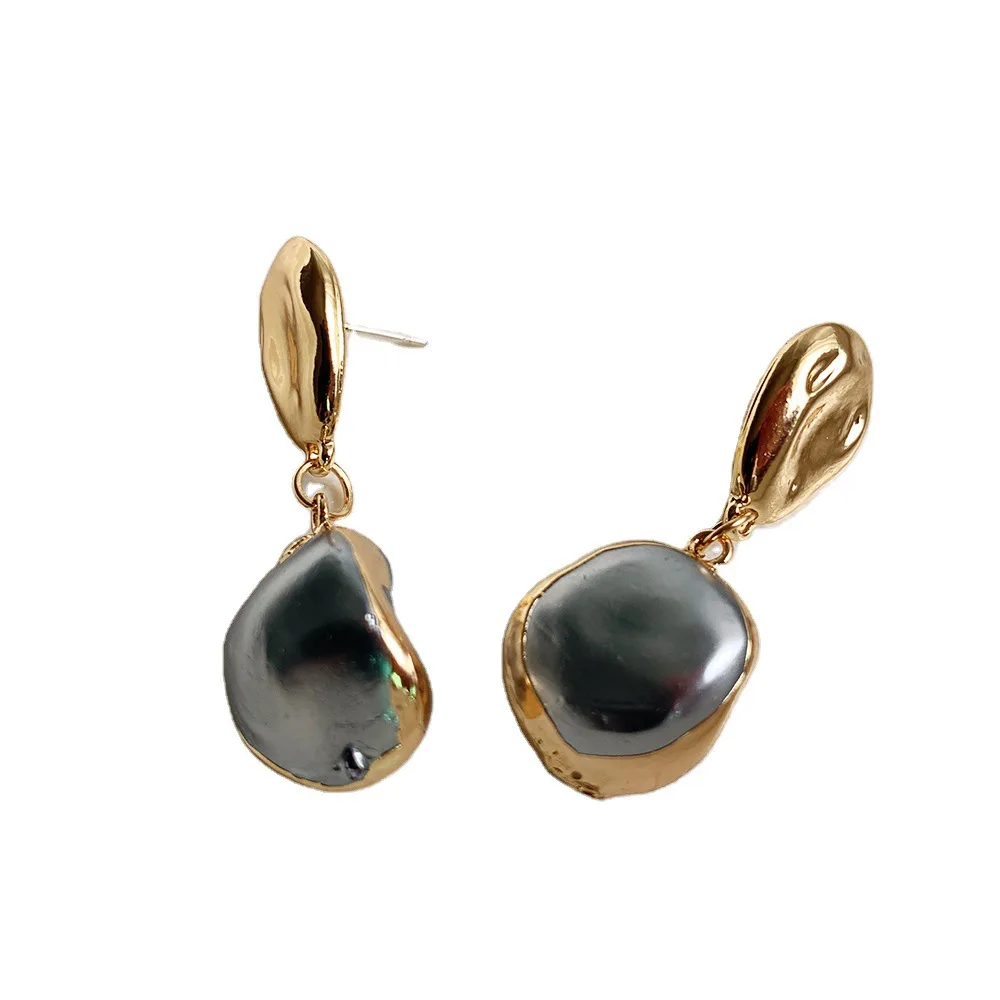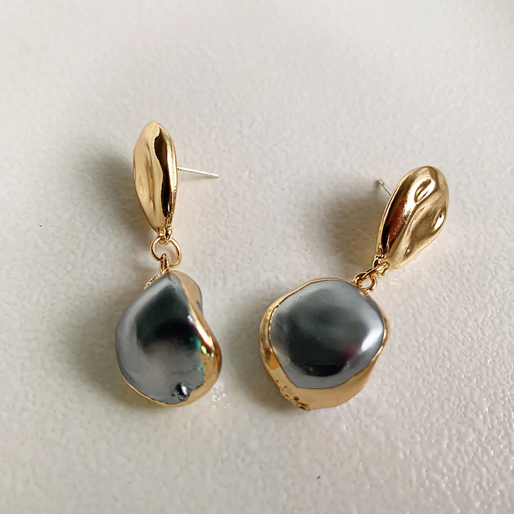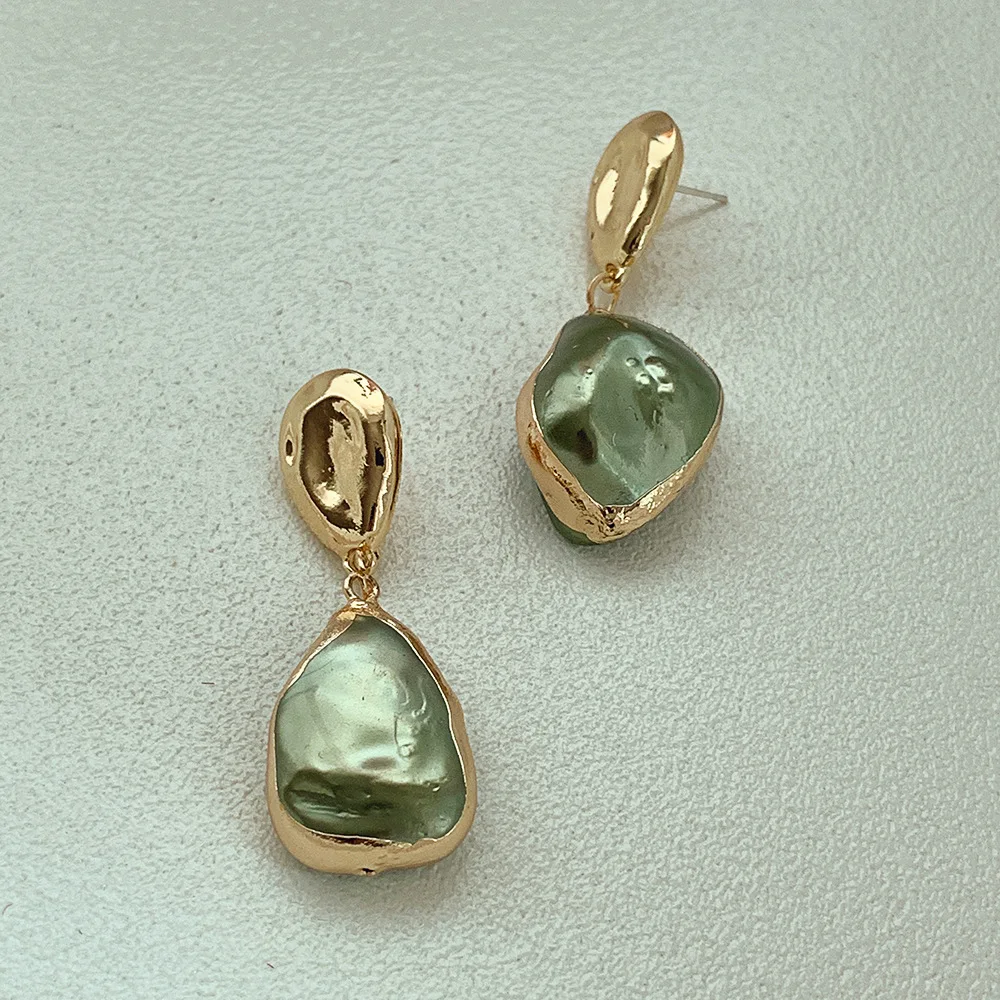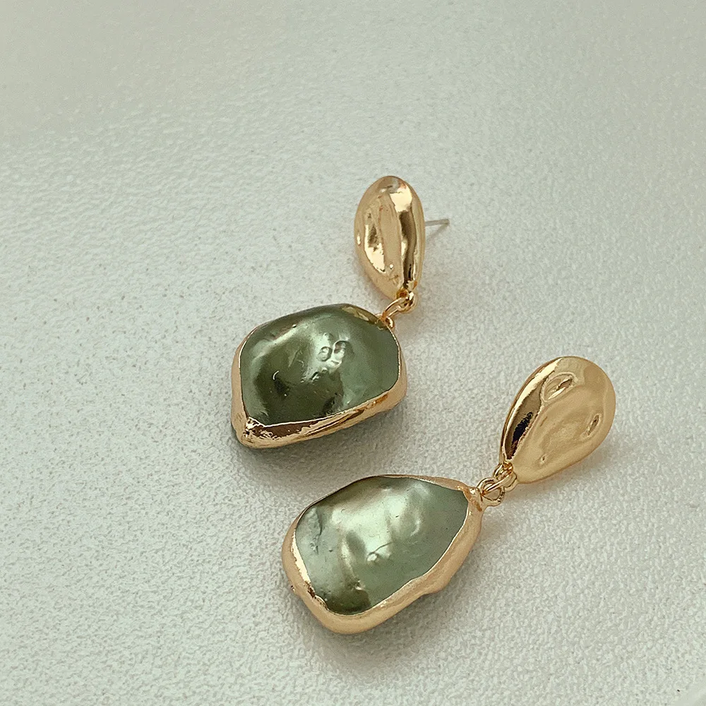 Minar Unique Design Irregular Baroque Pearl Long Drop Earrings for Women Gold Color Metal Geometric Dangle DEarrings Oorbellen