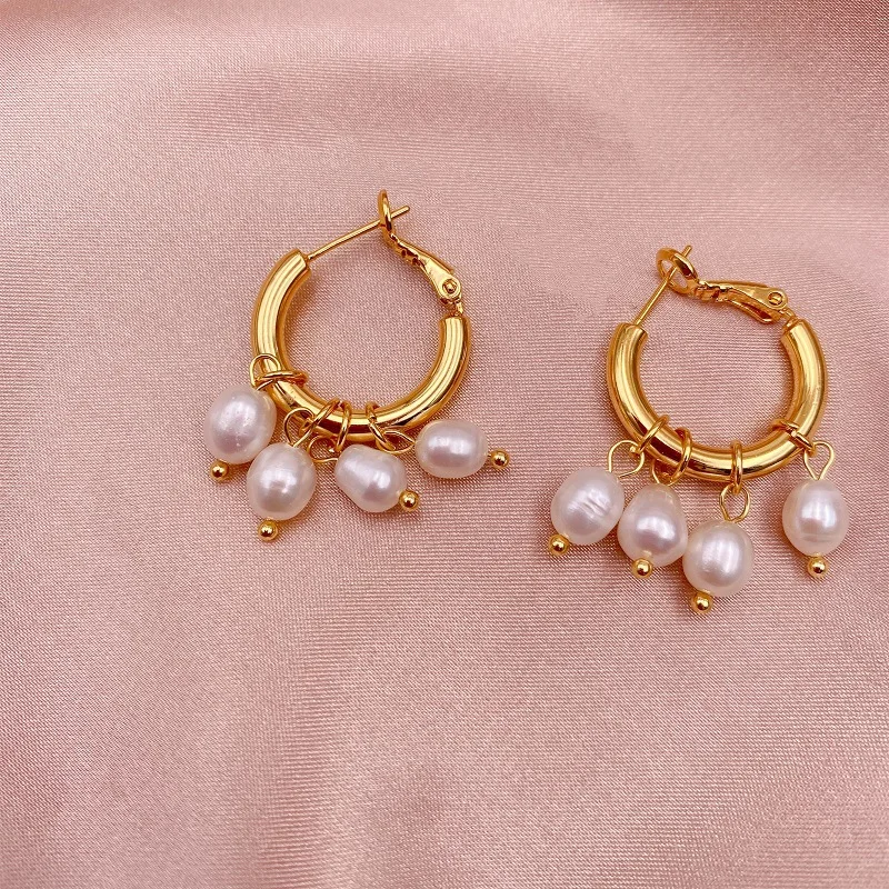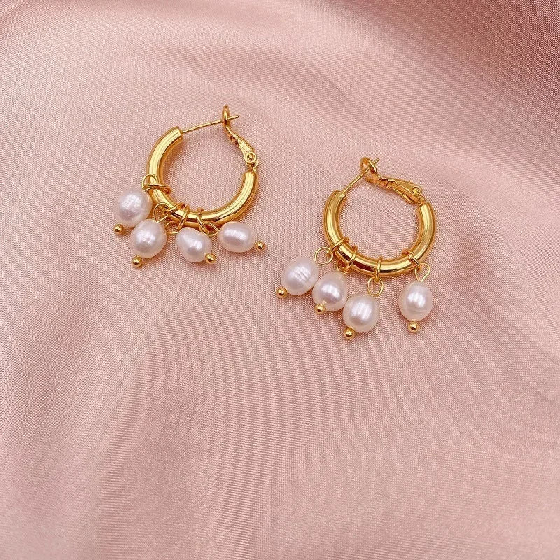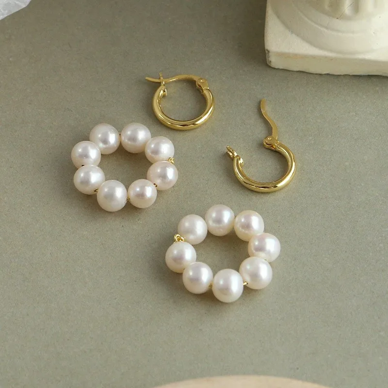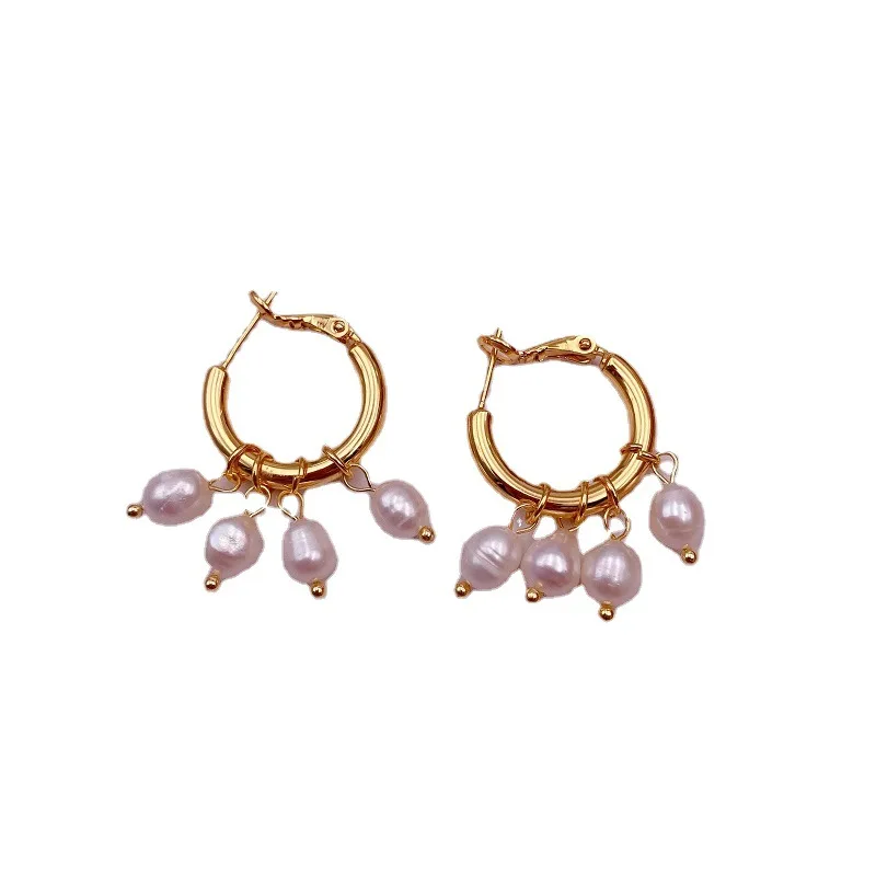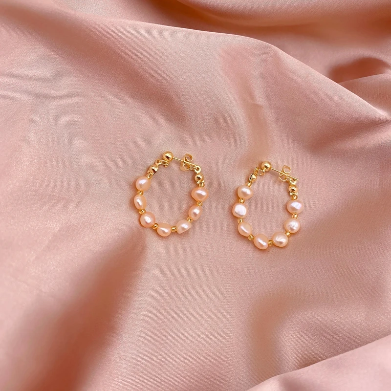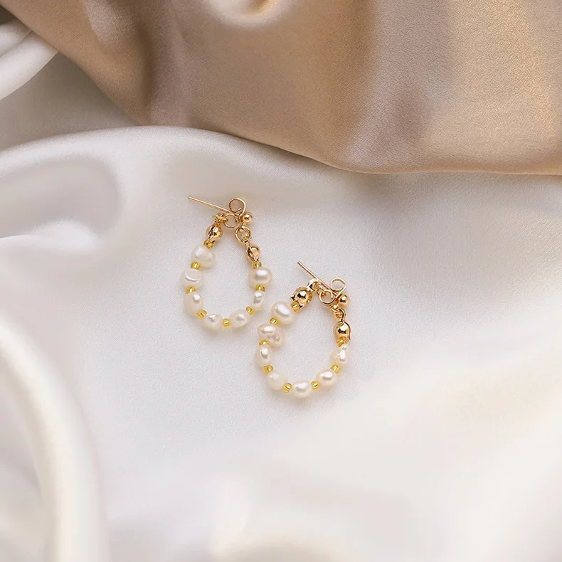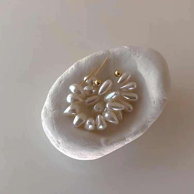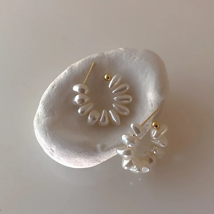 Minar Unique Design Irregular Freshwater Pearl Hoop Earrings for Women Baroque Pearls Beads Circle Statement Earring Brincos