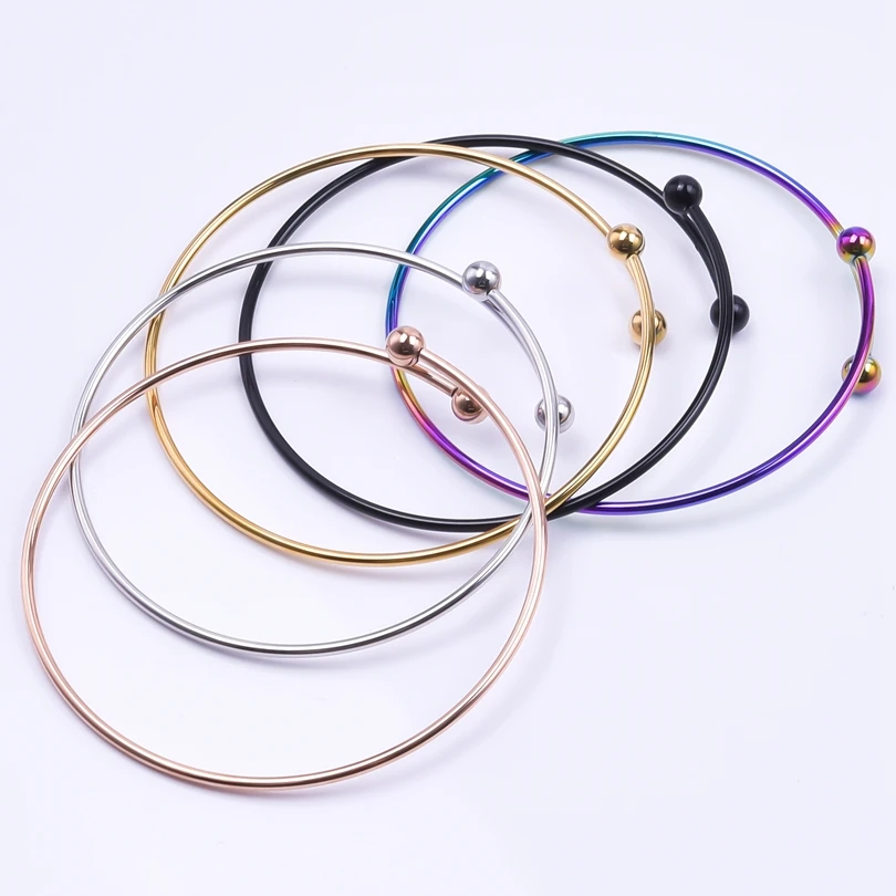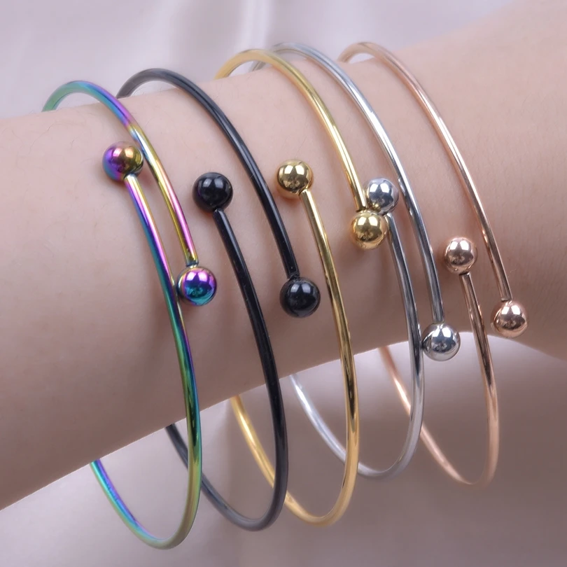 Minimalist Fashion Smooth Beads Open Adjustable Bangle Stainless Steel Bracelet For Women Femme Handmade Jewelry Gifts Supplies