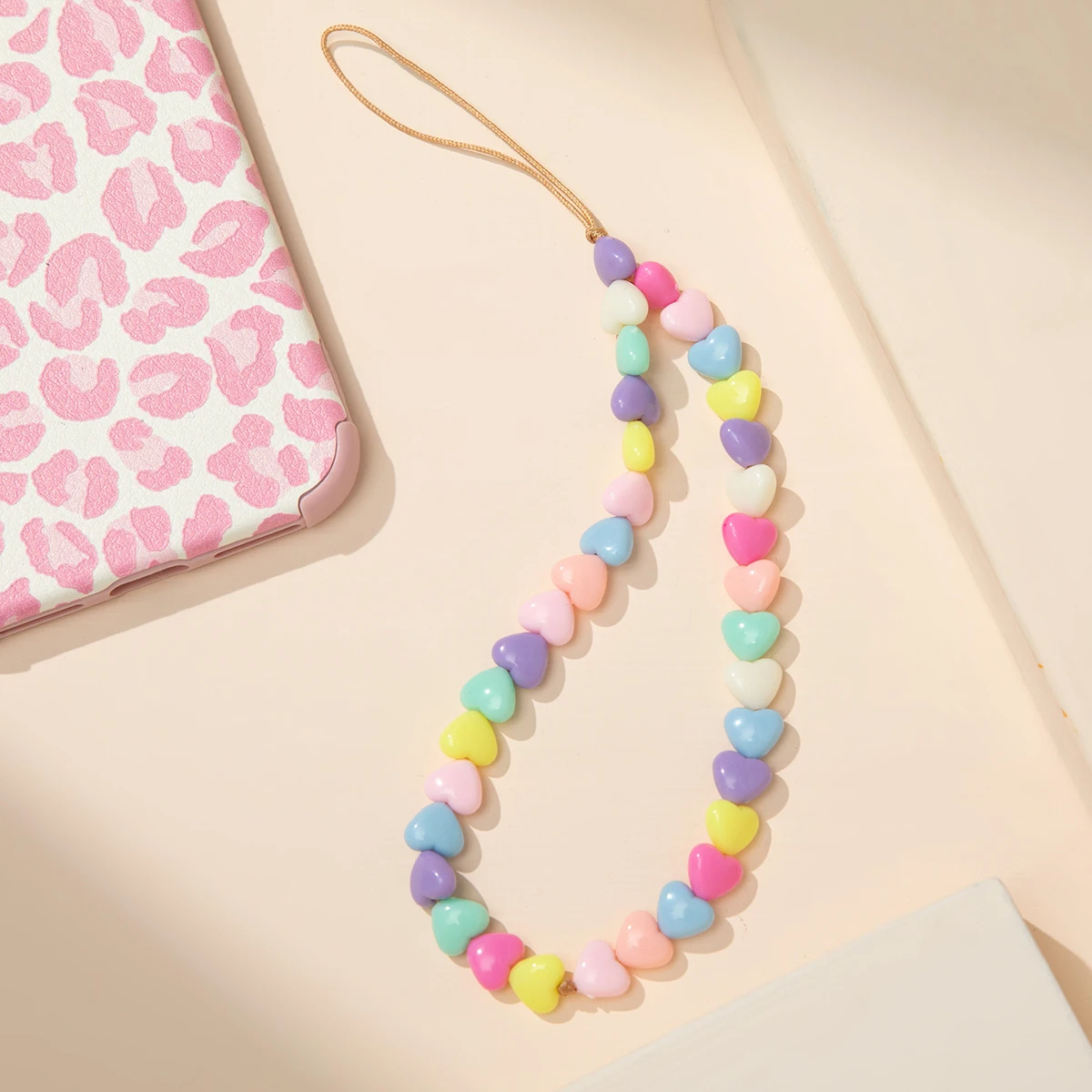 Mobile Phone Strap Silicone Bead Chain Flower Pendant Soft Pottery Bead Chain for Cell Phone Case Hanging Cord Necklace Lanyard