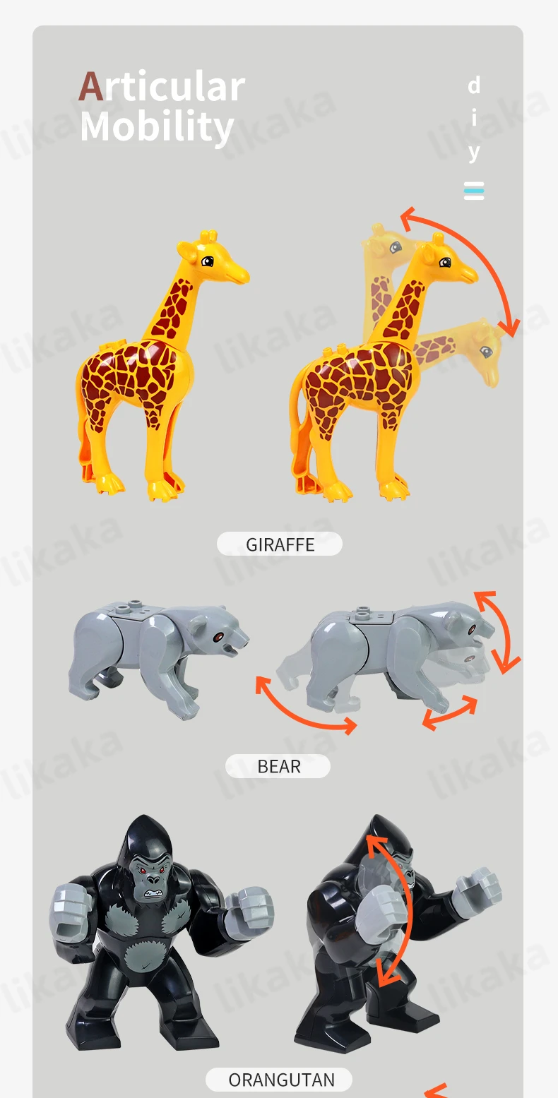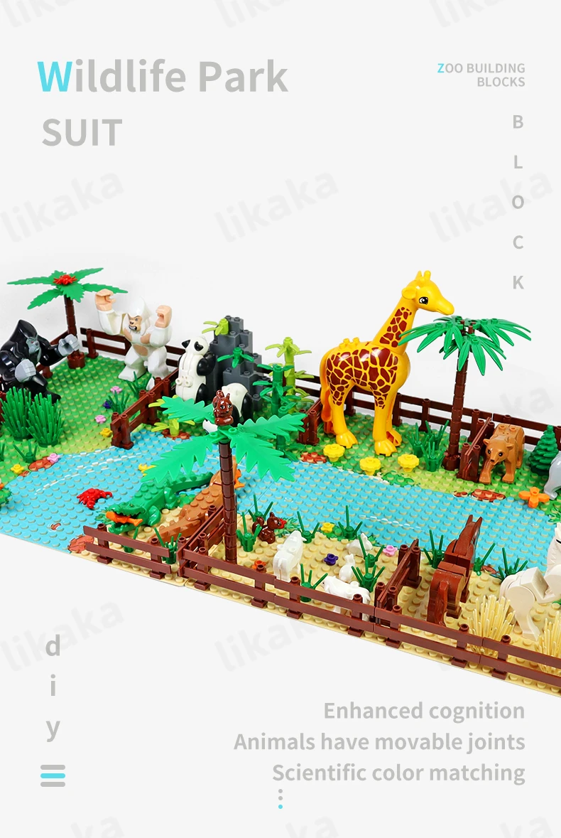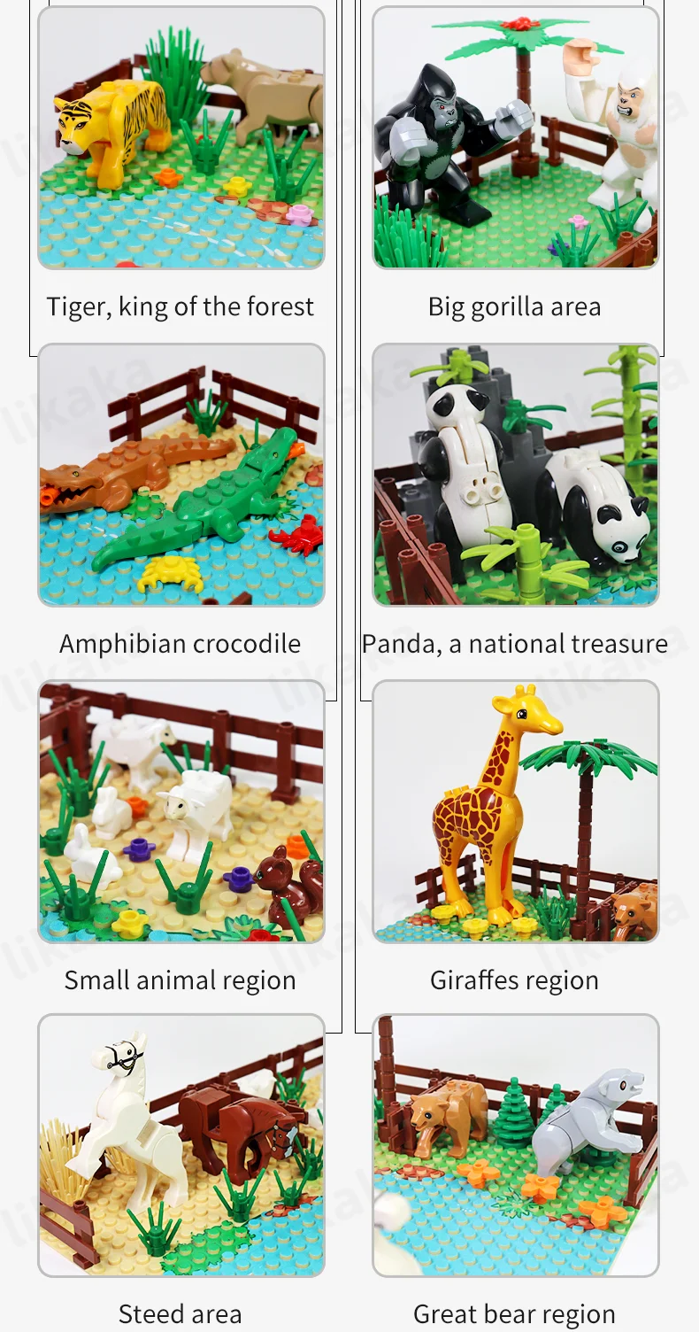 MOC Zoo Animals Building Blocks Set for Kids Montessori Toys Gift Compatible Classic Wild Animals Blocks City Friends Bricks