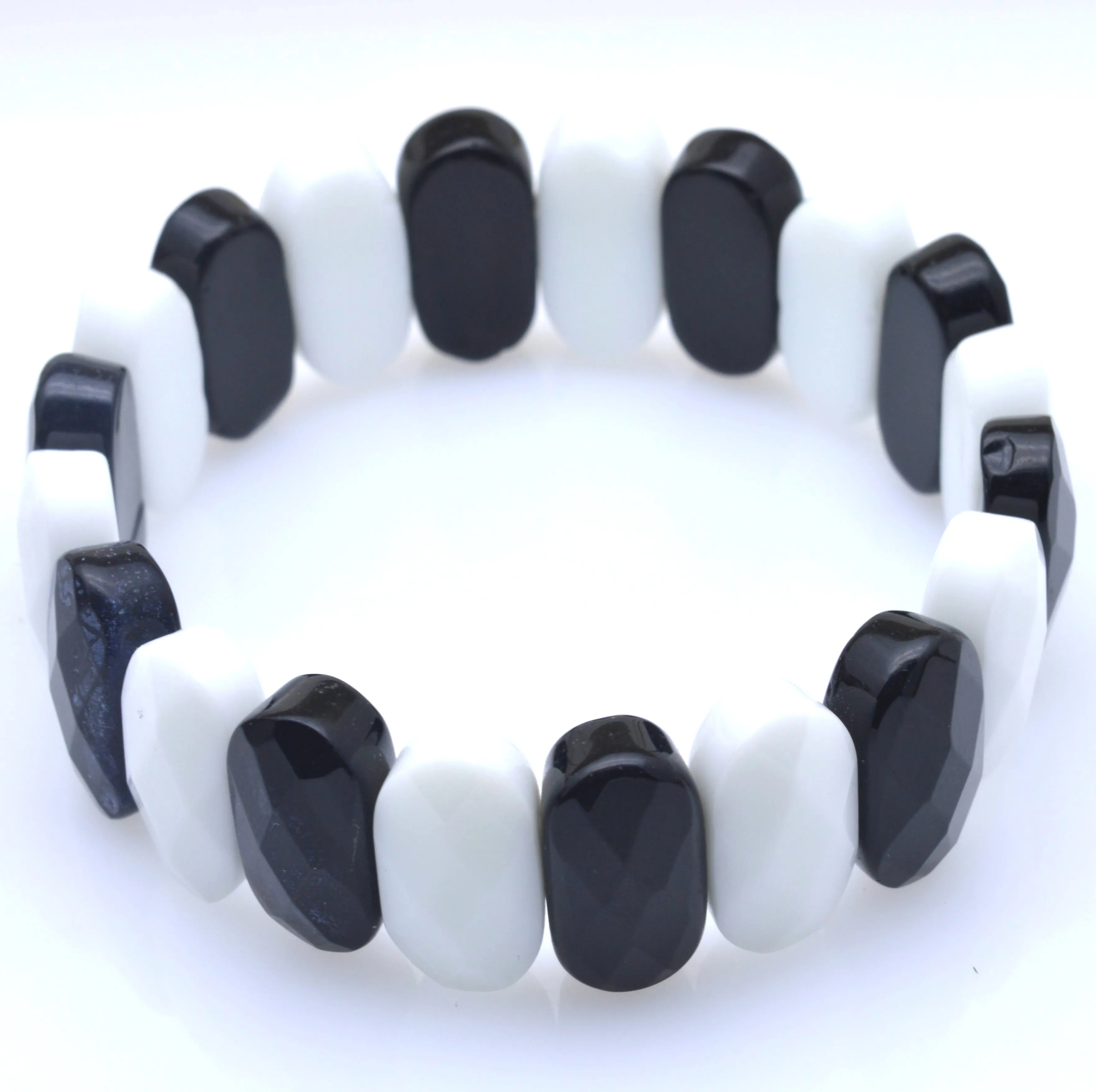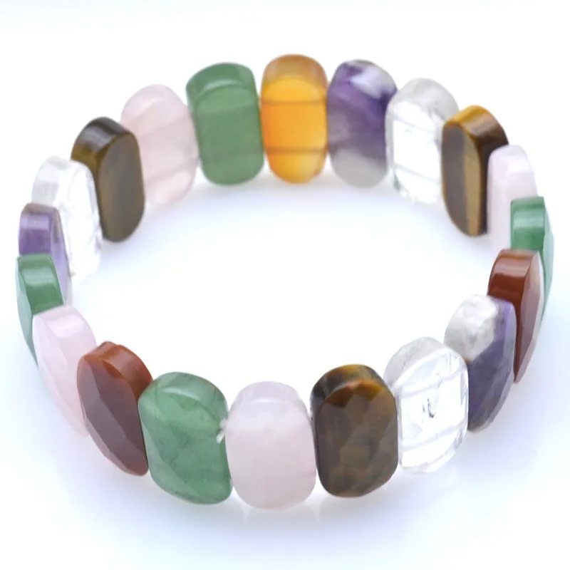 Natural 10x14mm Oval Shape Facted Elastic Cord Stone Agates Turquoise Obsidian Amethyst Bracelets Bangles Femme For Women