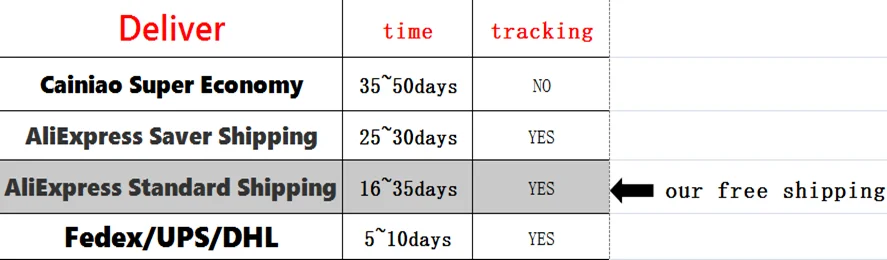 * we will choose Aliexpress standard Shipping for free, it will cost 16~35 days to Main country Such as German,France and so on.