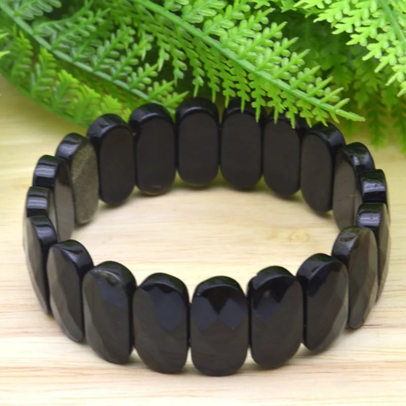 Natural 10x14mm Oval Shape Faceted Elastic Cord Stone Agates Turquoise Obsidian Amethyst Bracelets Bangles Femme for Women