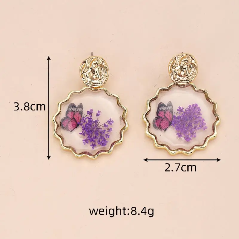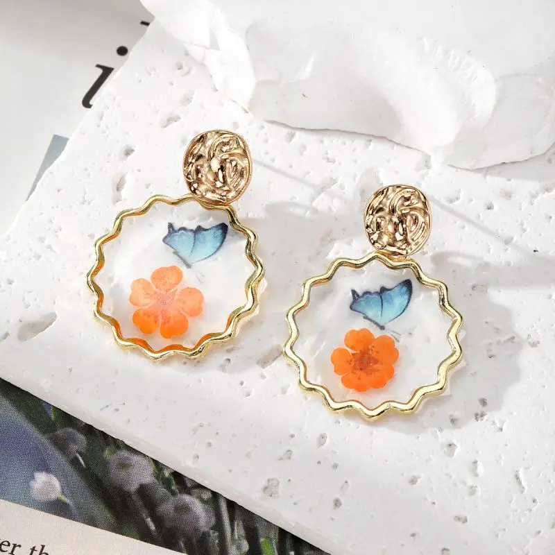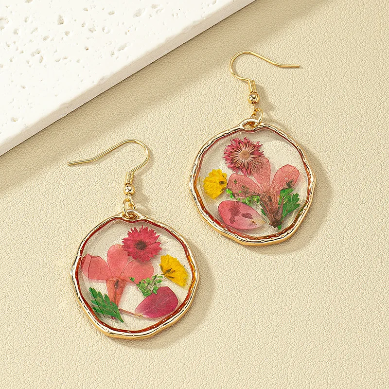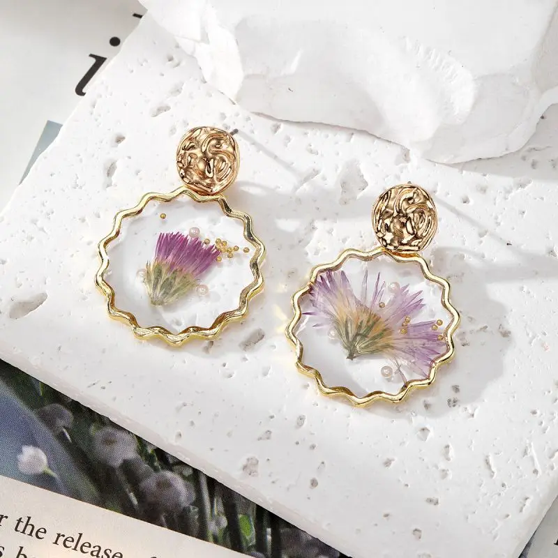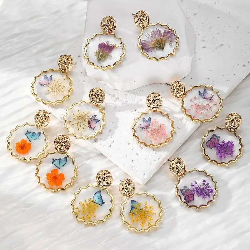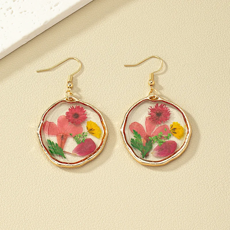 Natural Flower Dangle Earrings Women Colorful Pressed Flower Earring Unique Epoxy Resin Floral Petal Pressed Earring Wholesale