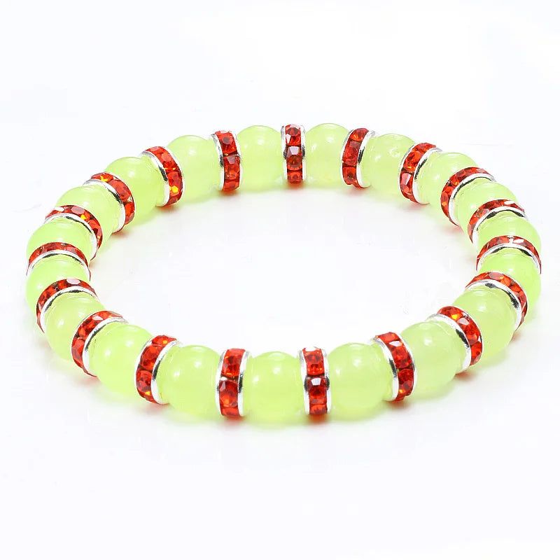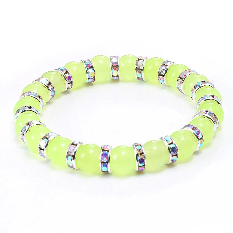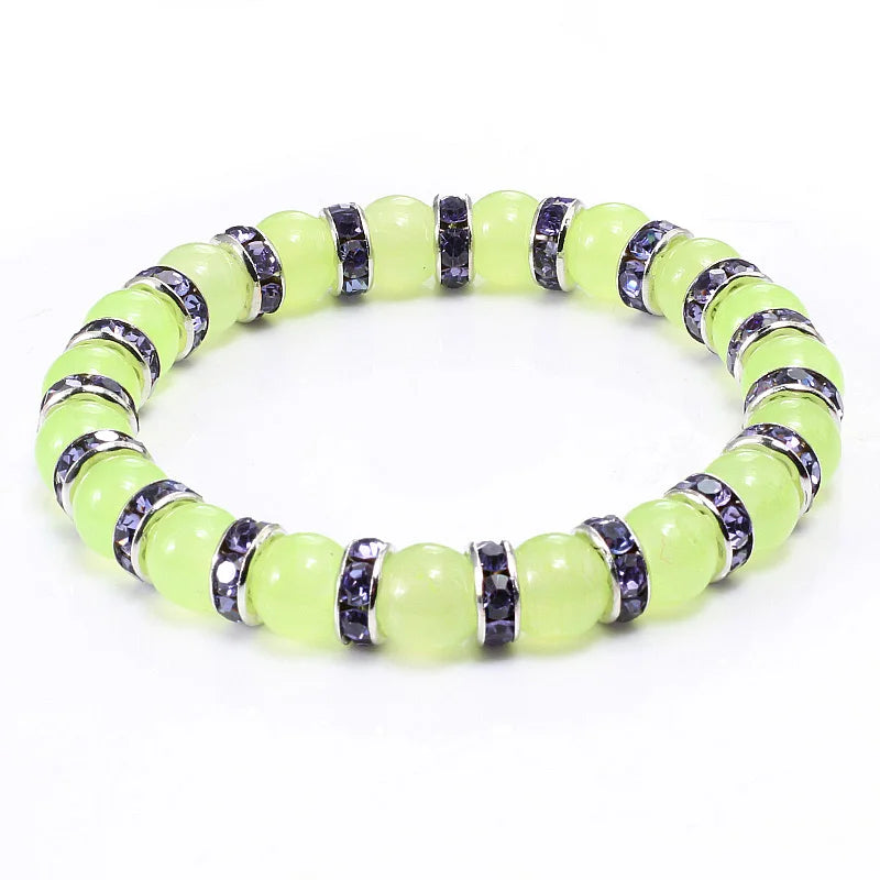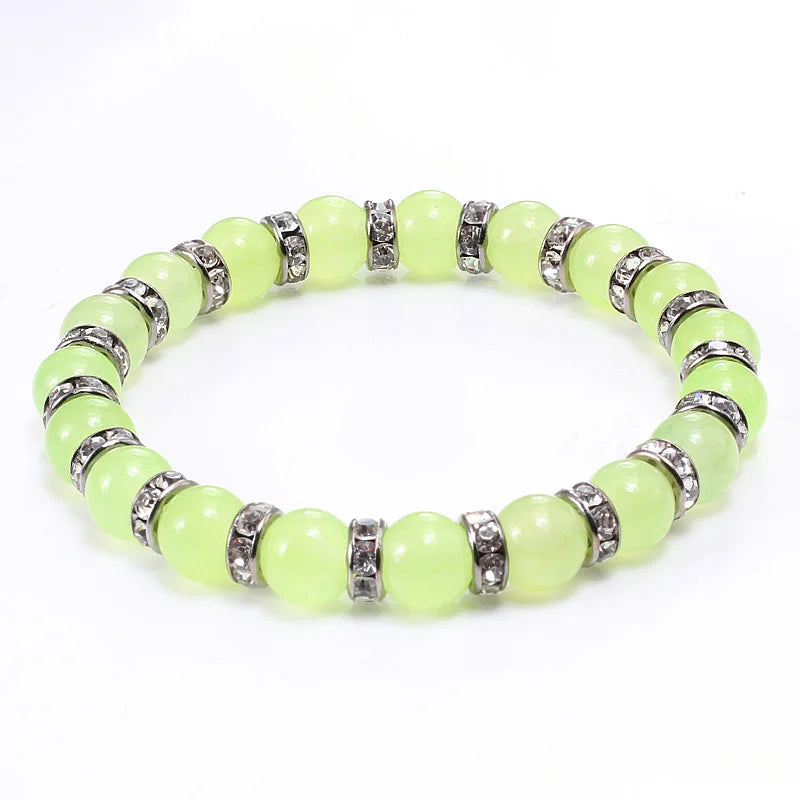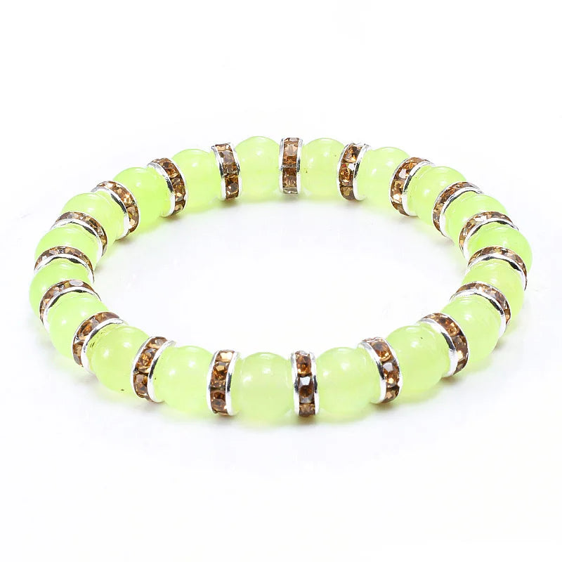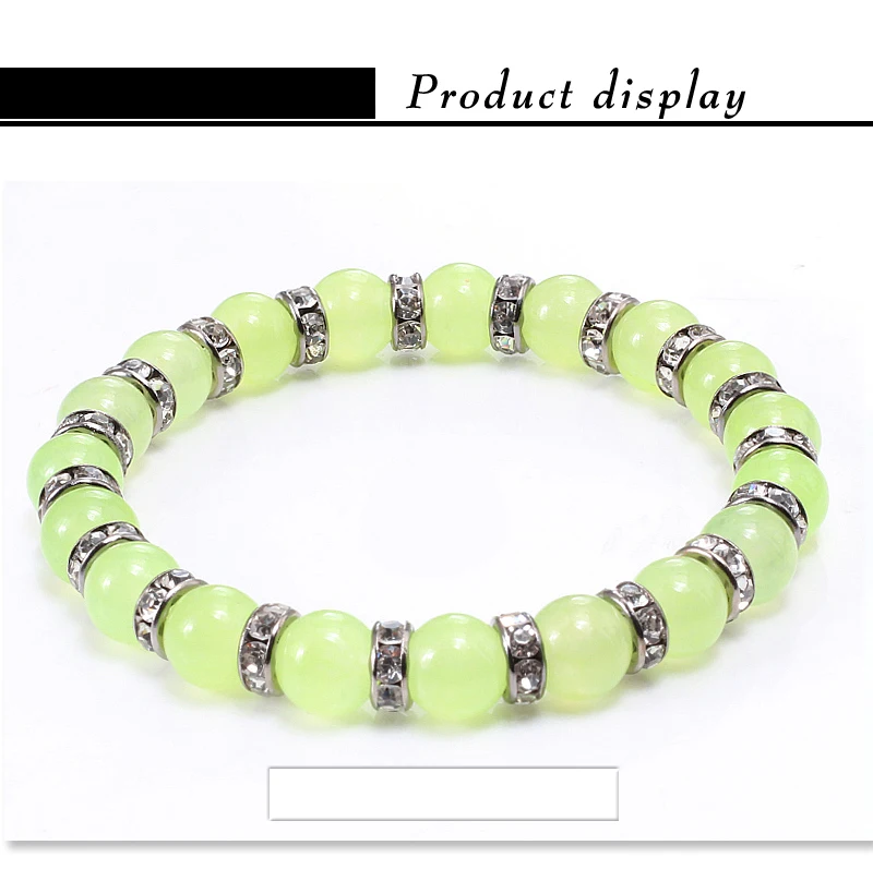 Natural Green Onyx Stone Beaded Bracelet Charm Women Rhinestone Luxury Stretch Strand Bracelets Men Prayer Sports Jewelry