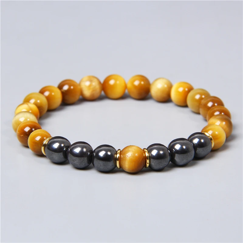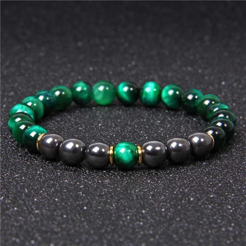 Natural Polished Blue Tiger Eye Stone Bracelets For Women Men Fashion Classic Elastic Hematite Bracelets Femme Bangle Jewelry