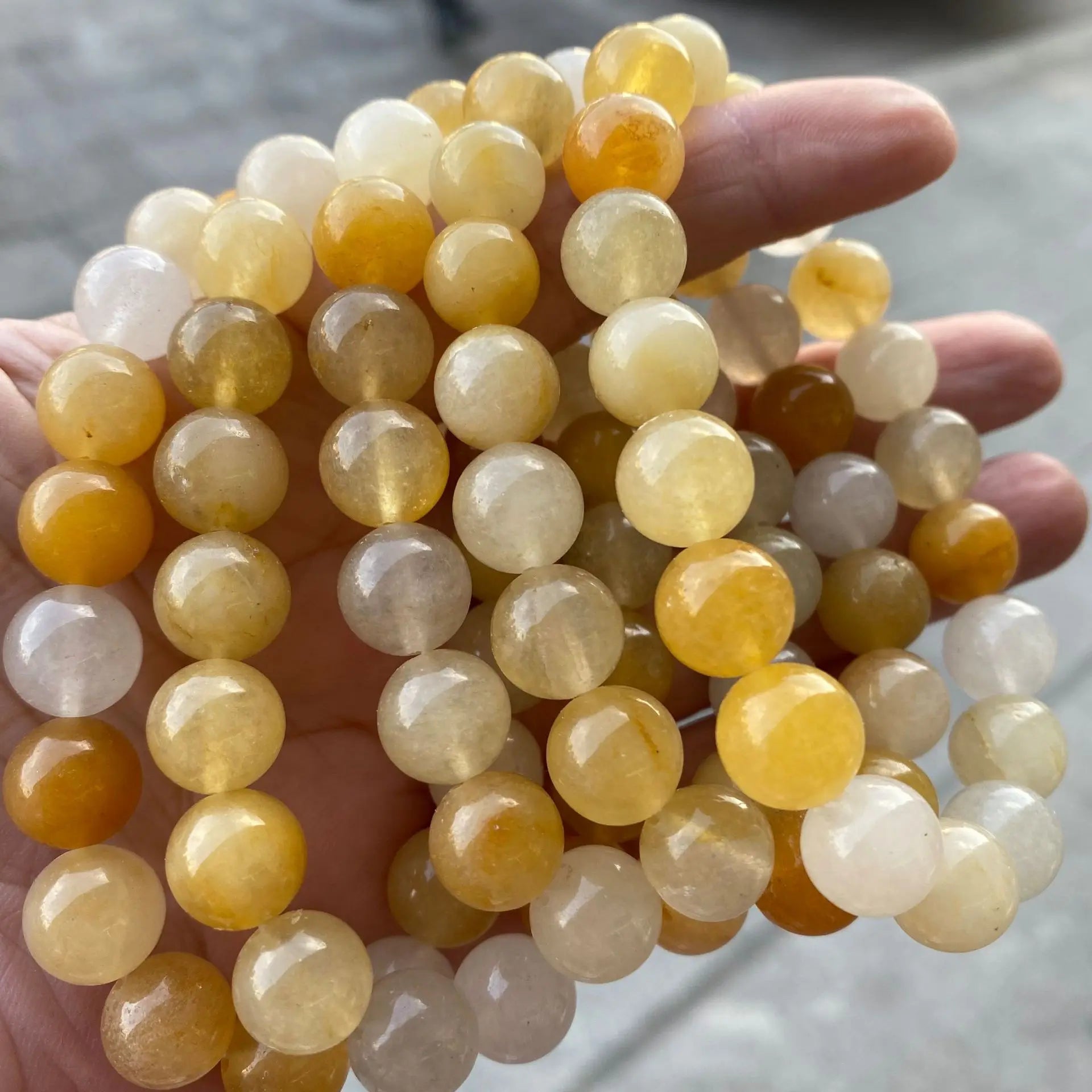 Natural Stone Aragonite Beads Bracelet Women Yellow Topaz Jade Quartz Crystal Yoga Reiki Healing Stretch Bangles Female