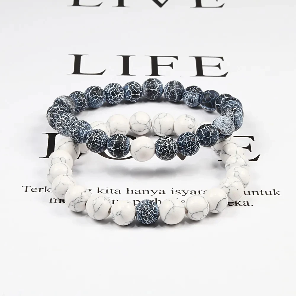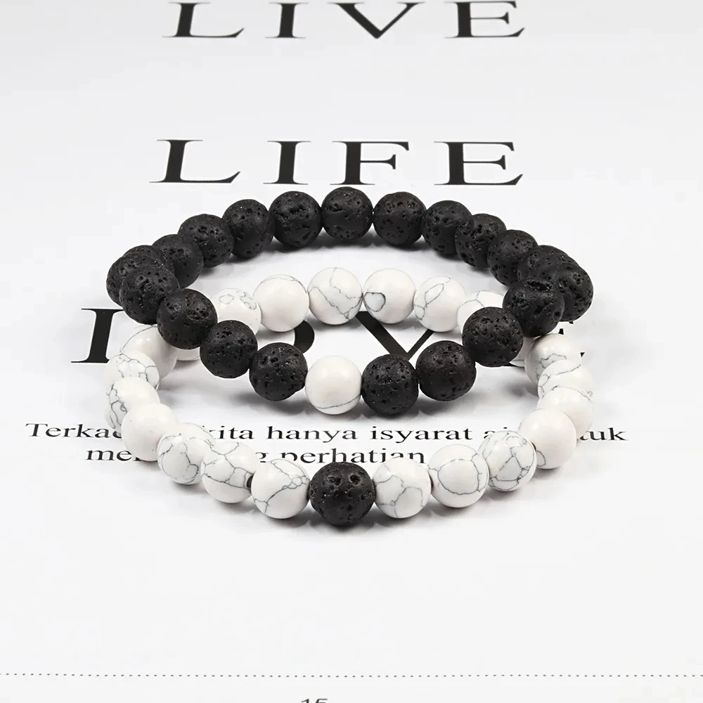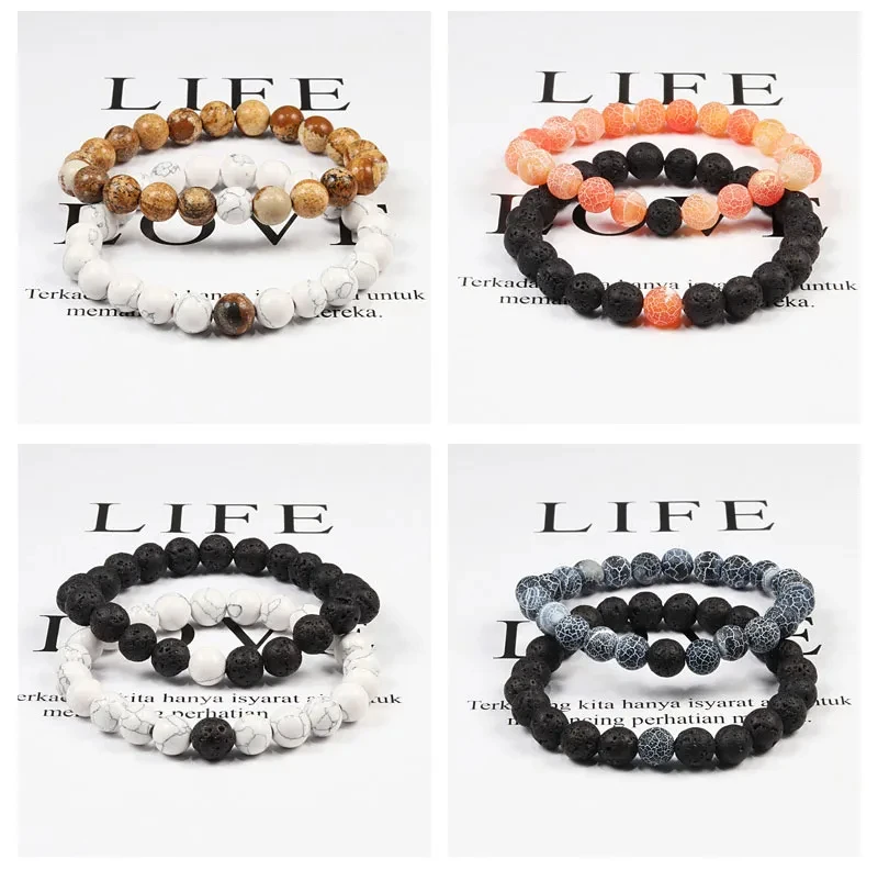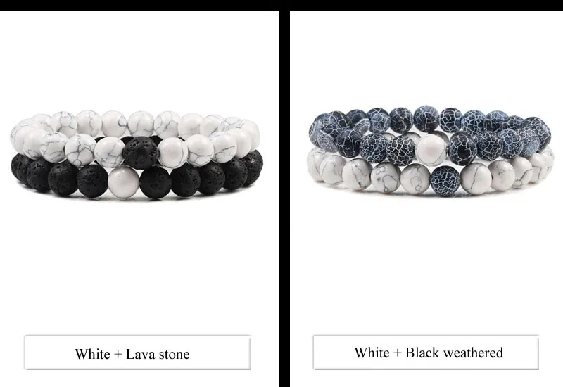 Natural Stone Beaded Bracelets Set For Couples Men Women Distance Black White Natural Lava Stone Tiger Eye Yoga Bead Bracelet