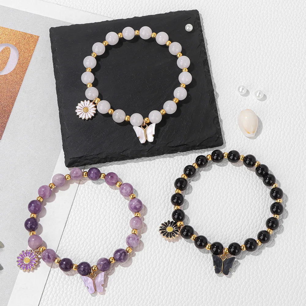 Natural Stone Blue Amazonite Beaded Bracelet Resin Butterfly Daisy Charm Bracelets For Women Rose Quartzs Jades Bangles Jewelry