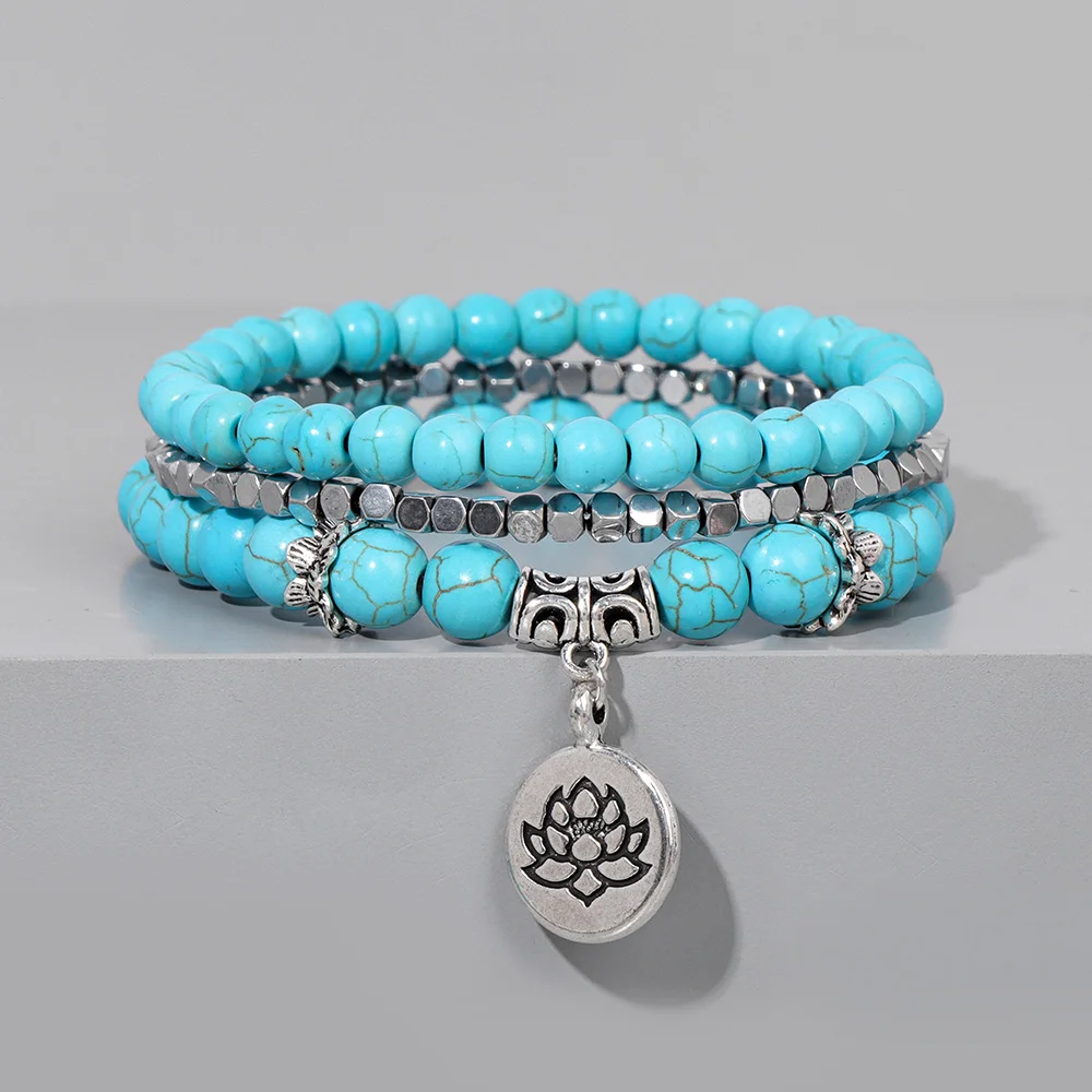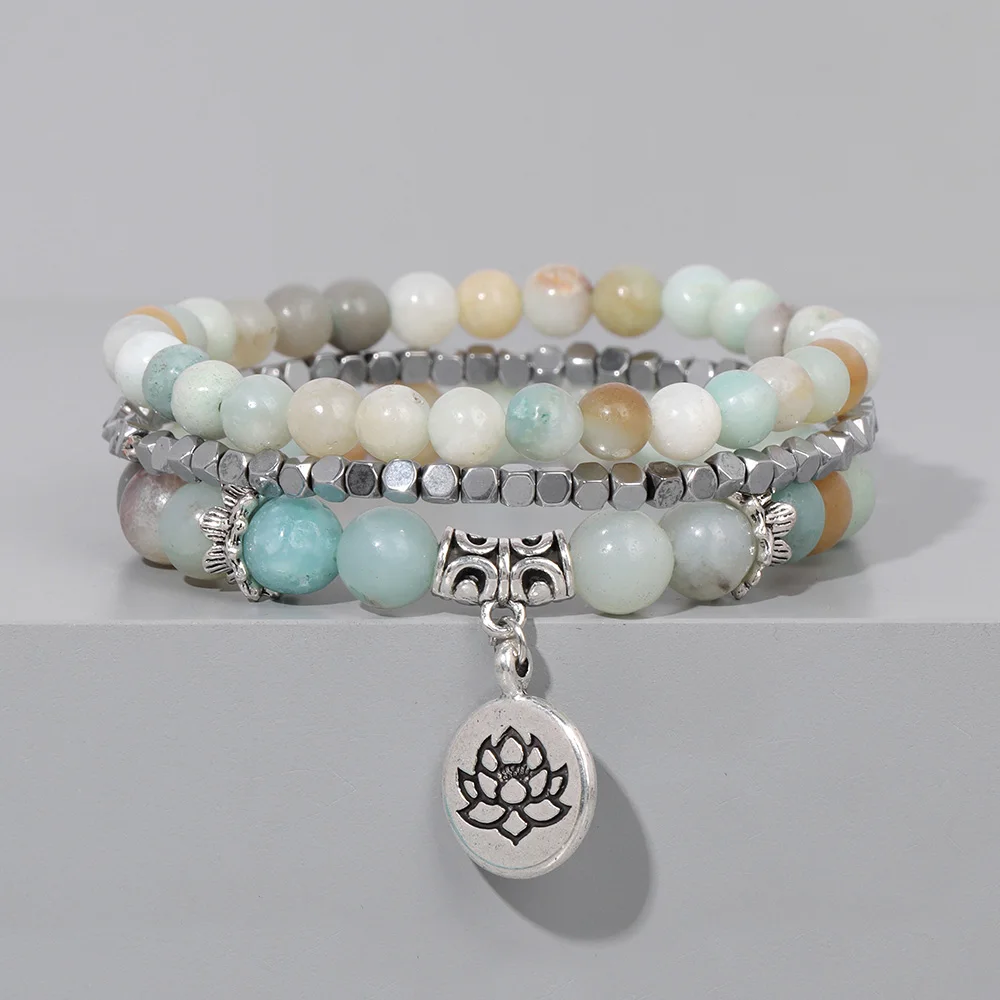 Natural Stone Lotus Buddha Beads Amethysts Agates Lapis lazuli Tiger Eye Turquoises Bracelet For Women Men Yoga bracelet Femme