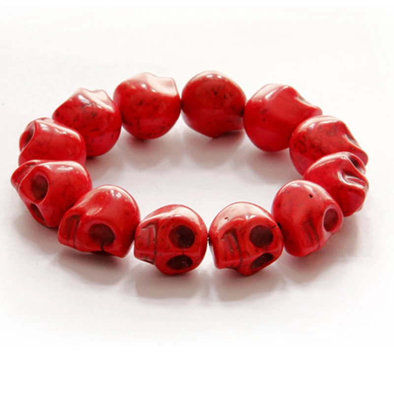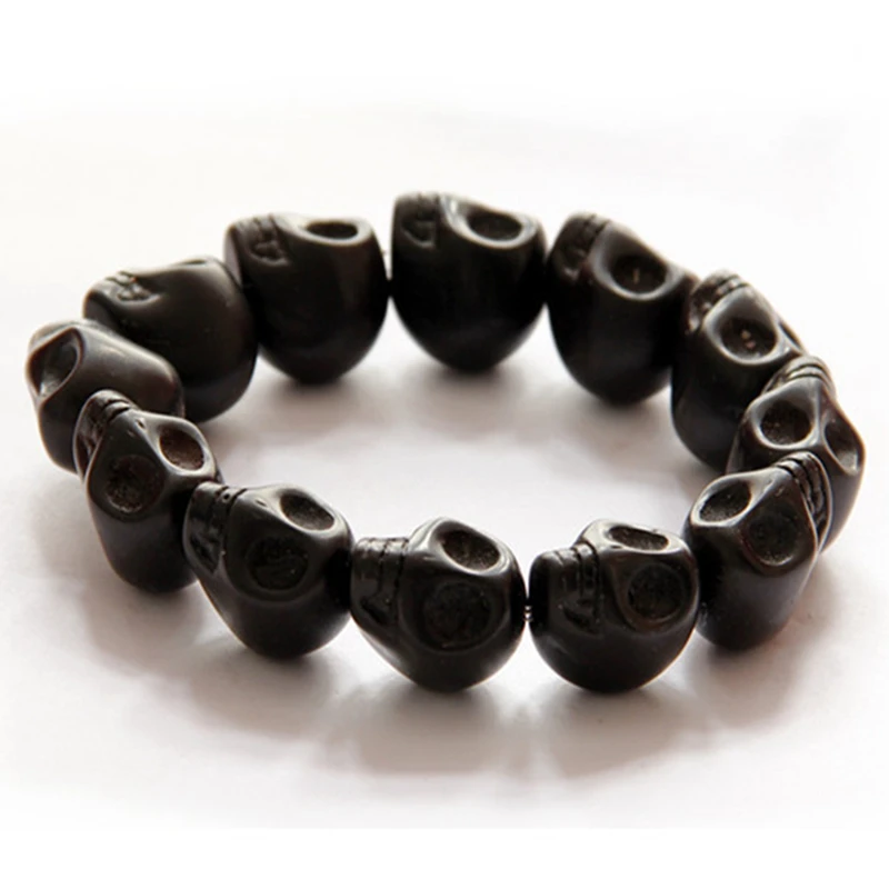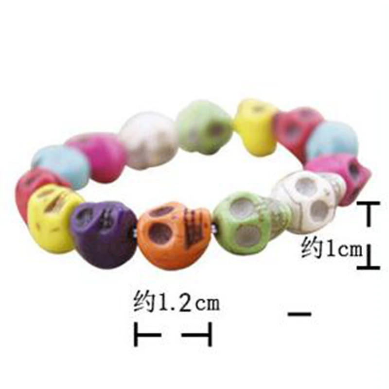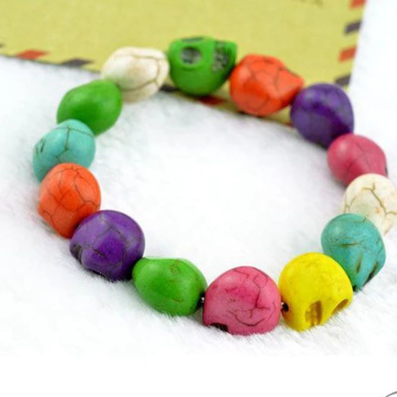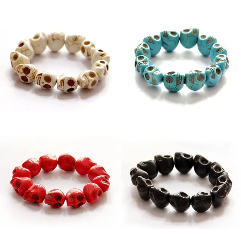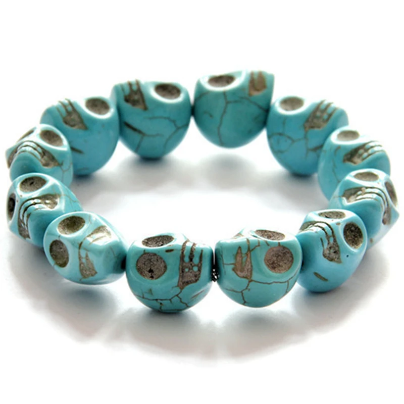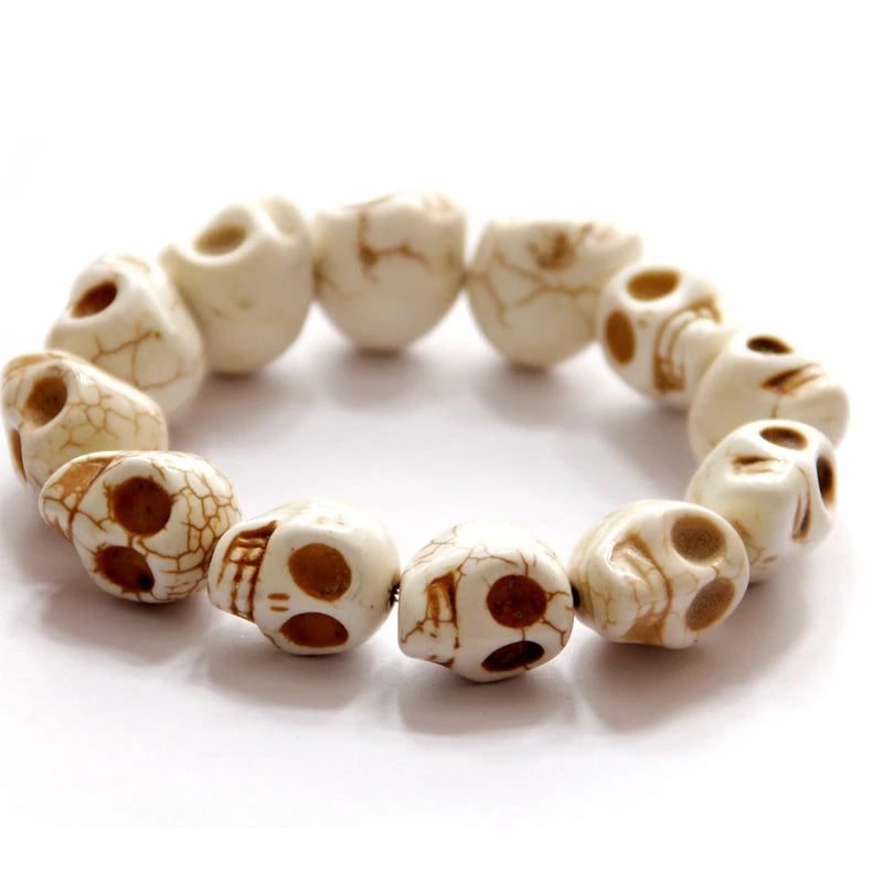 Natural Stone Men Women Skull Elastic Bracelet Lava Beads Tiger Eye Bangle