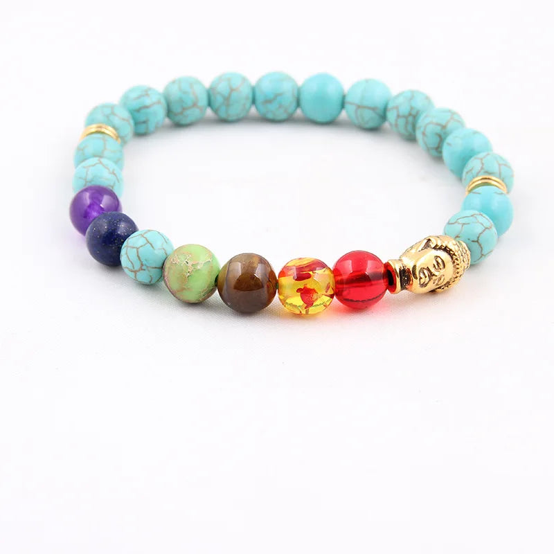 Natural Volcanic Stone Bracelets Charm Women Chakra Balance Beads Men Black Lava Turquoises Strand Bangle Fashion Buddha Jewelry