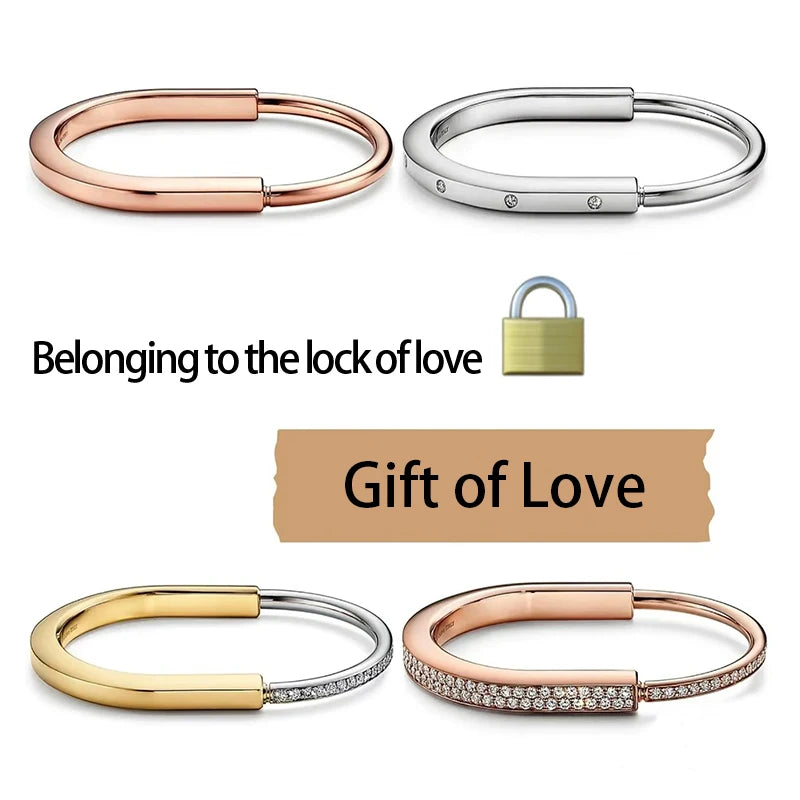 New 2024 Classic 925 Silver Luxury Jewelry Women's Bracelet Geometric Zircon Lock Rose Gold Anniversary Gift
