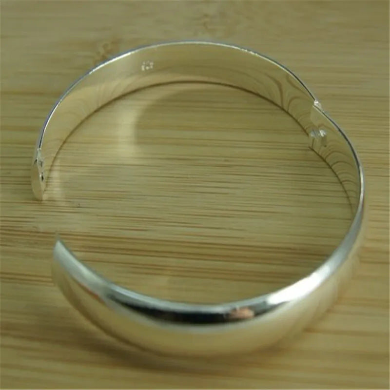 New 925 Sterling Silver Bracelet Simple Glossy Open Bangle Fashion Jewelry Gift