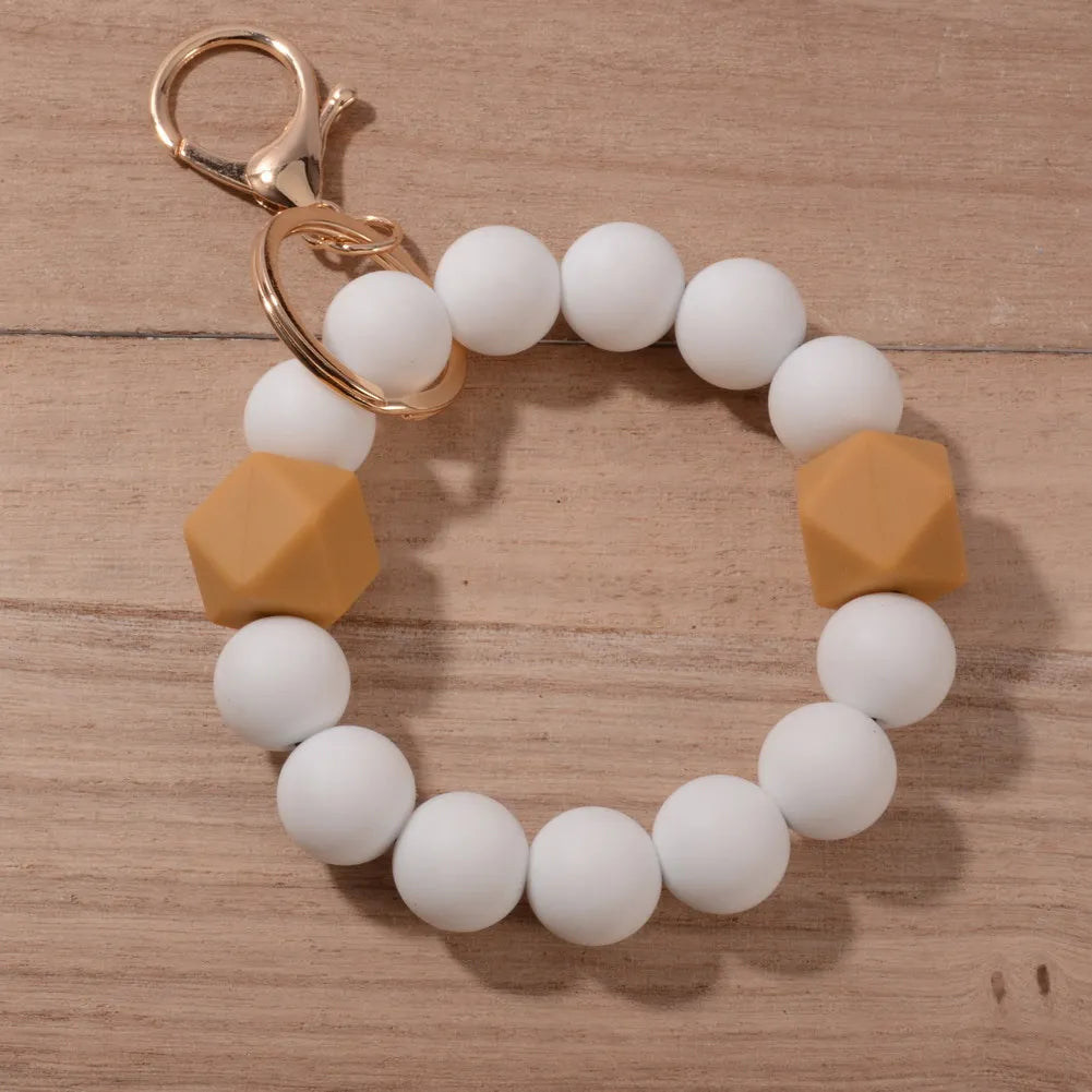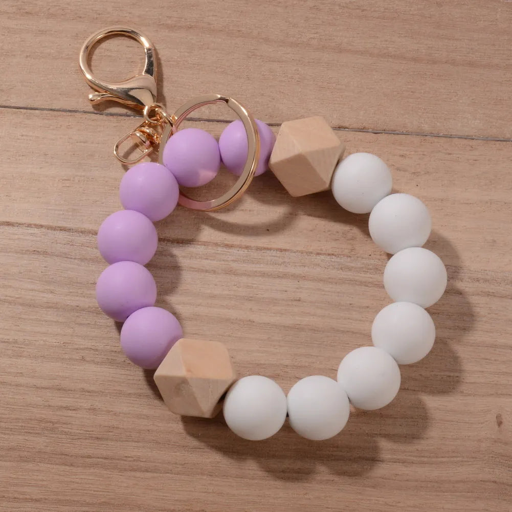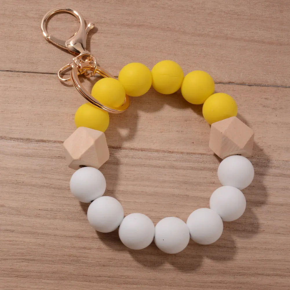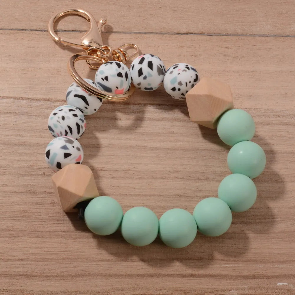 New Design Luxury Camouflage Silicone Bead Wrist Keychain Women Wood Bead Bracelet Keyrain For Car Keys Bag Pendant Friends Gift