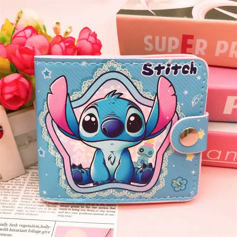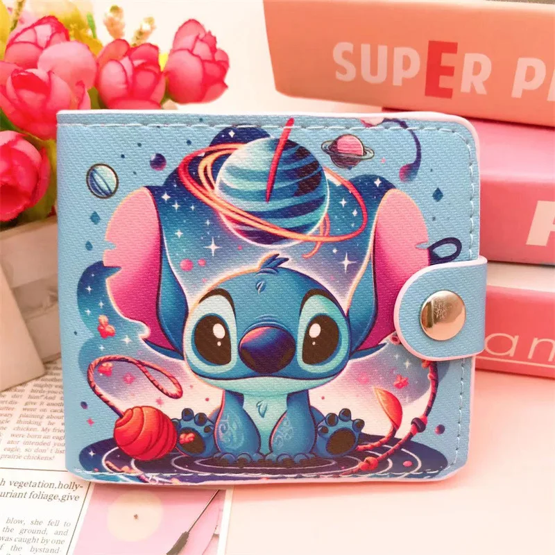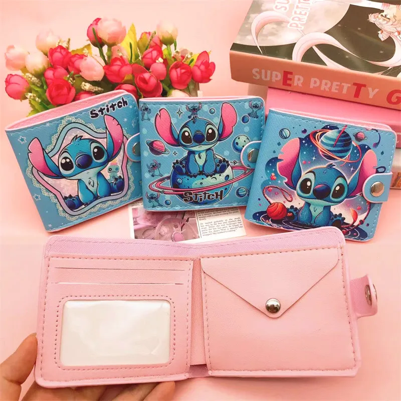 New Disney Stitch Cartoon Wallet Lilo & Stitch PU Multi-card Slot Short Wallet for Children Cute ID Card Holders Hasp Coin Purse