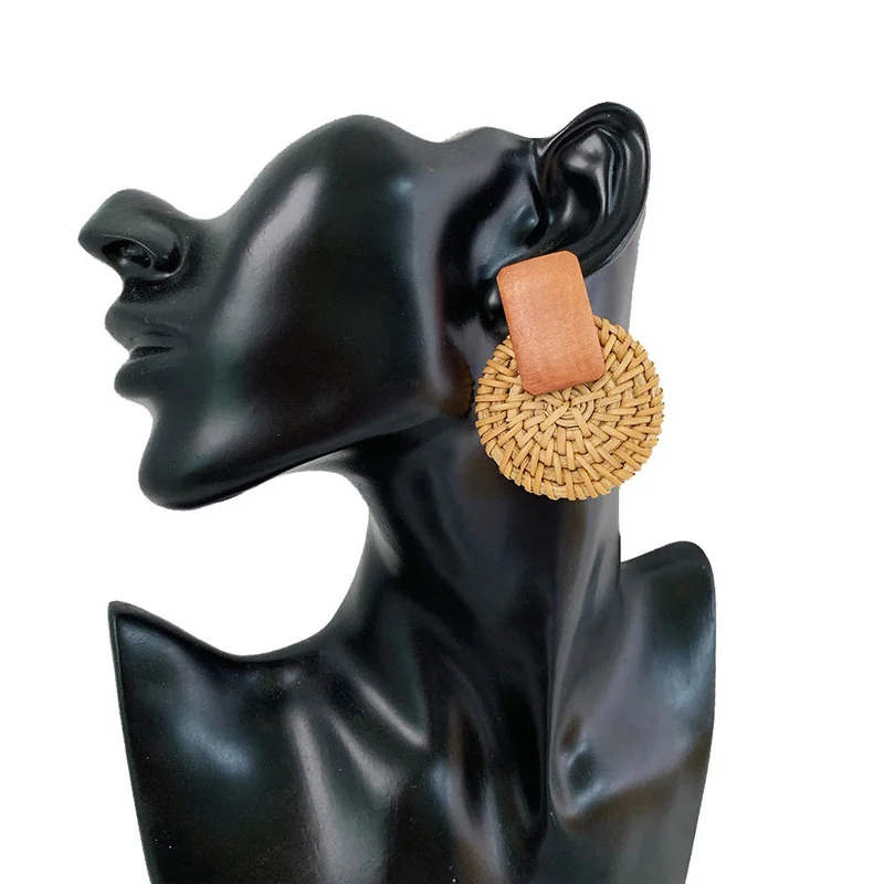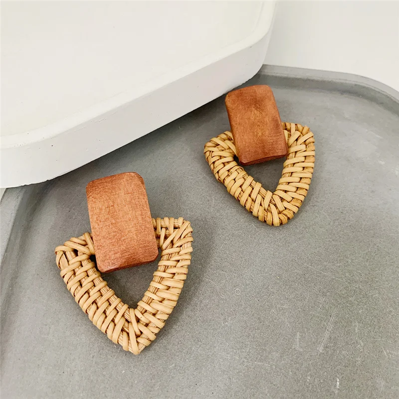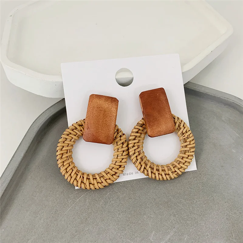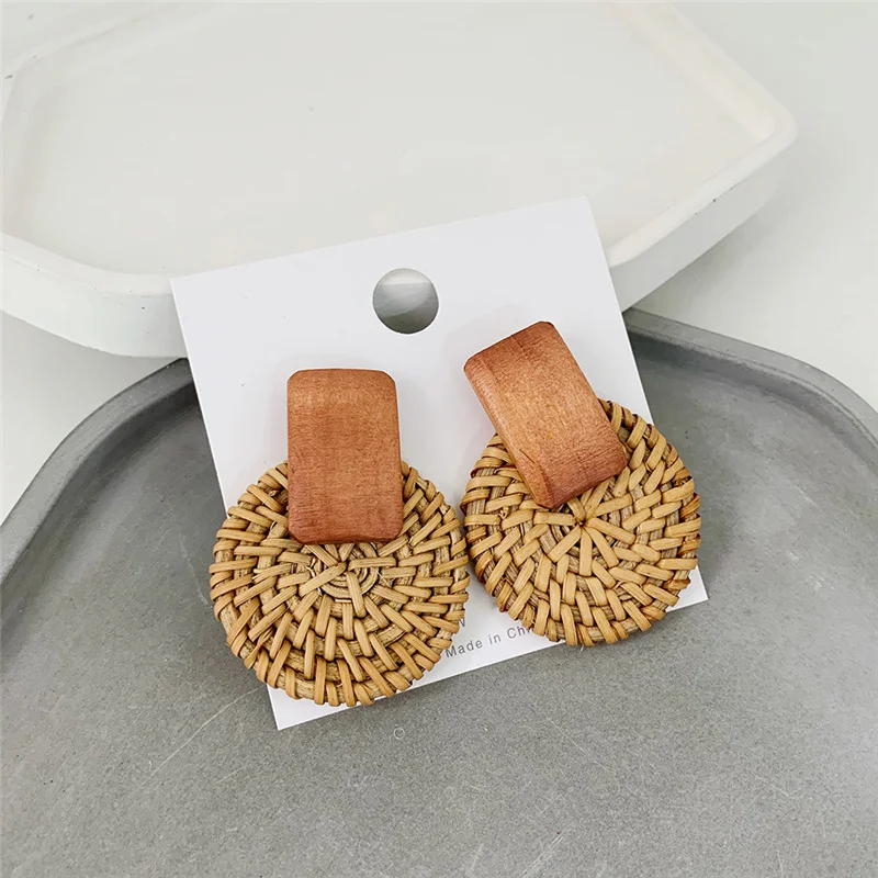 New Fashion Bamboo Wooden Straw Weave Rattan Knit Vine geometric round triangle long earrings bohemian For Women party jewelry
