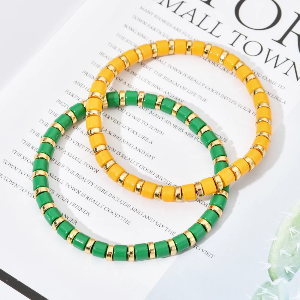 Hot Fashion Multicolor Enamel Colour Elasticity Bracelets Colorful Fashion Bangles for WOMEN Stacking Alloy Tile Bracelet Pulsera