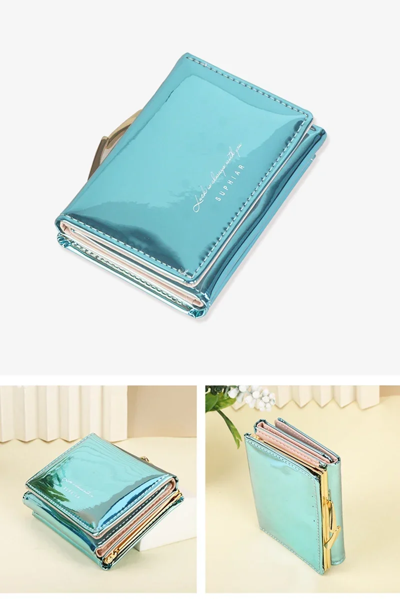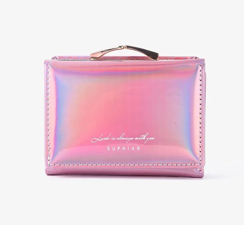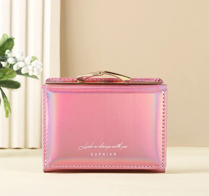New Fashion Pu Leather Rainbow Women Short Wallet Laser Cartera Girls Coin Purse Wallets for Women Birthday Gift Card Wallet