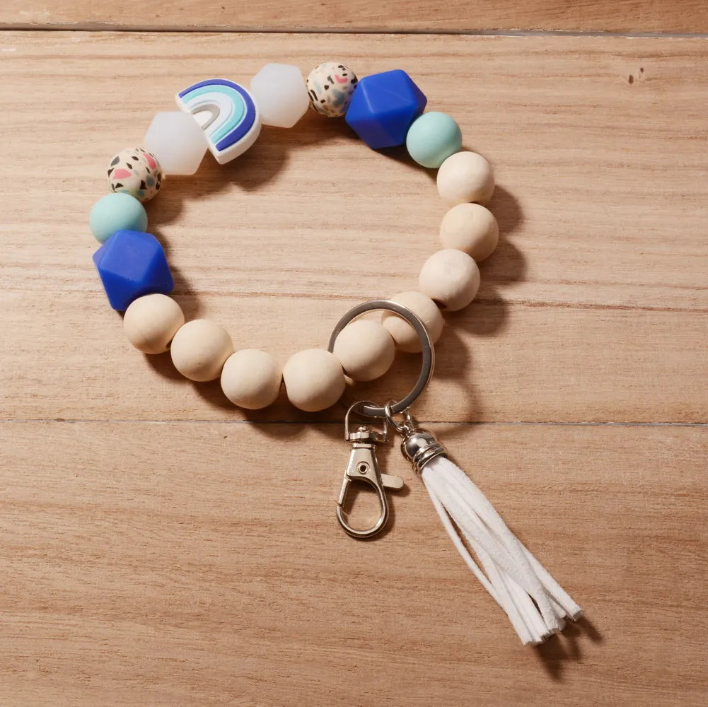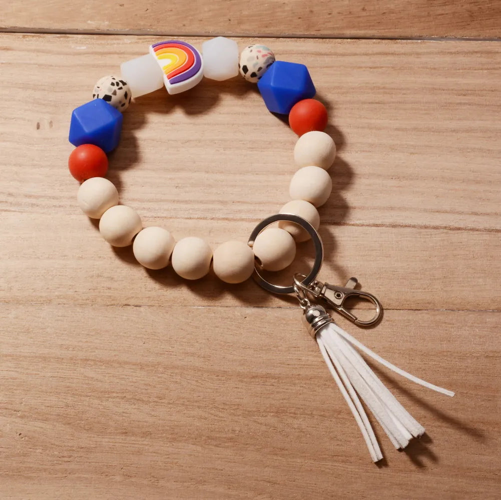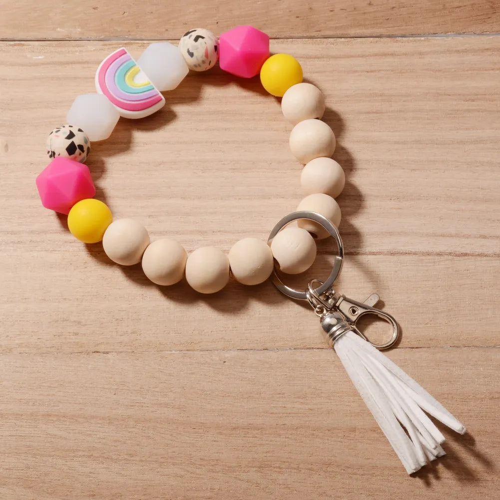 New Fashion Silicone Keychain For Keys Rainbow Color Silicone Beads Tassel Keyrings Women Men Beaded Bracelet Keychain Wholesale