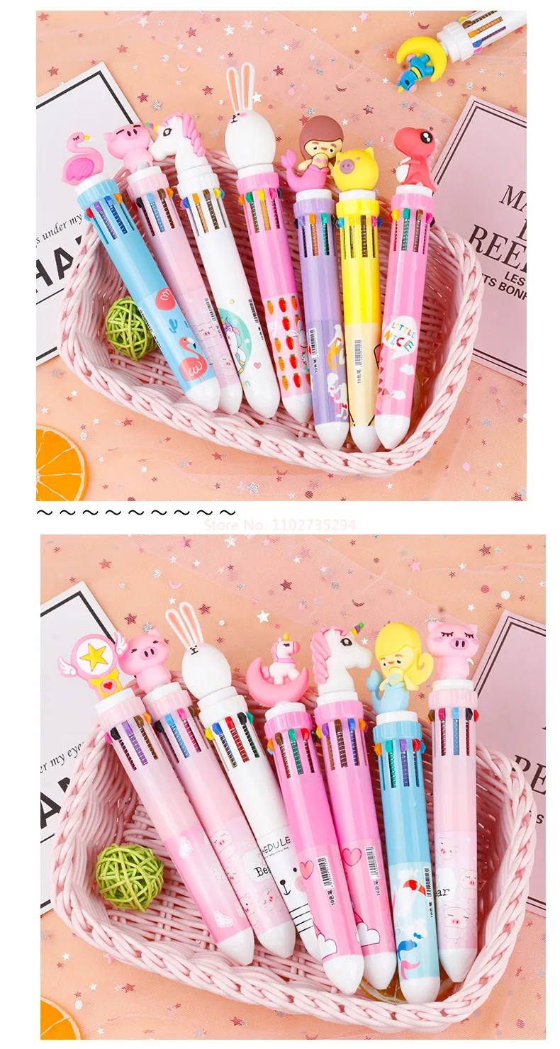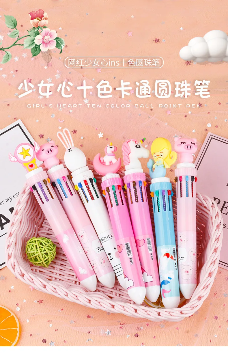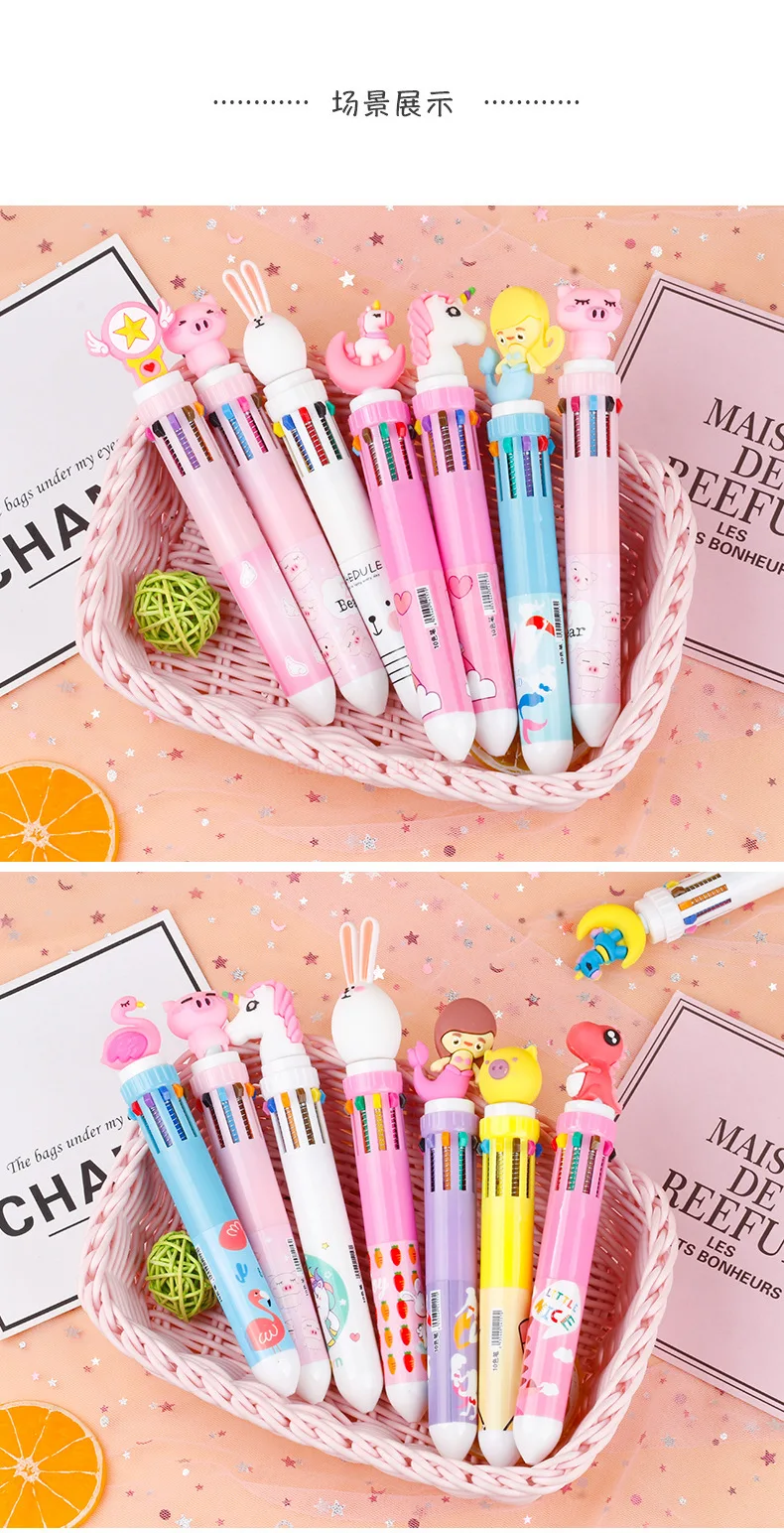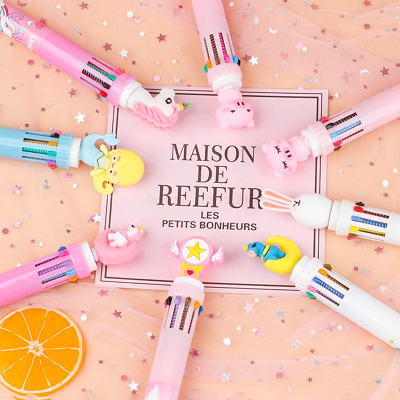New Girl'S Heart Creative Cartoon Silicone 10-Color Ballpoint Pen Kawaii Cartoon Students Multi-Color 0.5mm Stationery Gifts