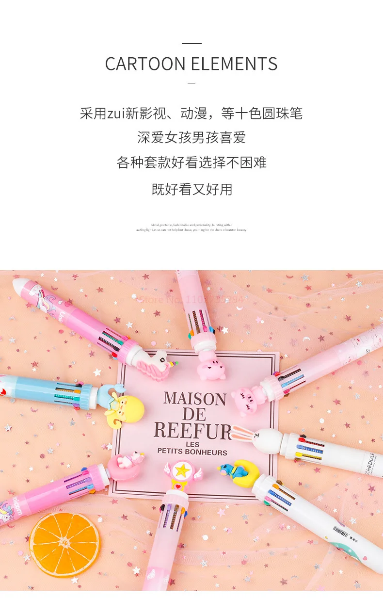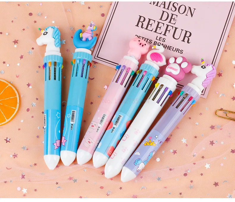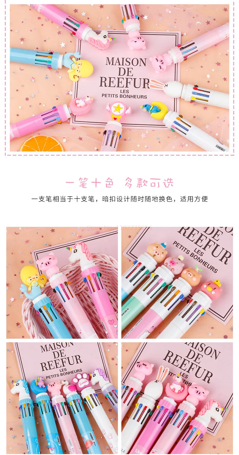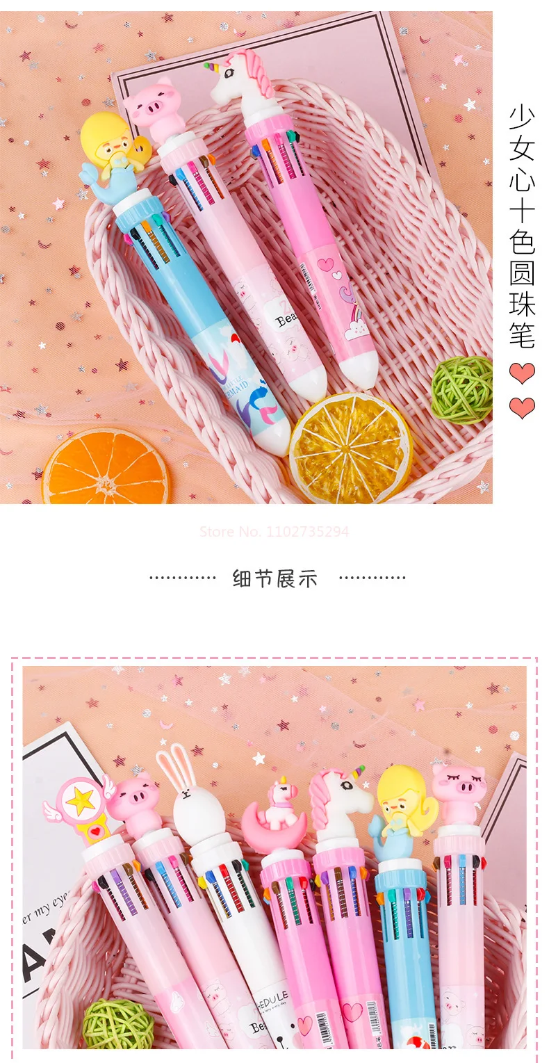 New Girl'S Heart Creative Cartoon Silicone 10-Color Ballpoint Pen Kawaii Cartoon Students Multi-Color 0.5mm Stationery Gifts