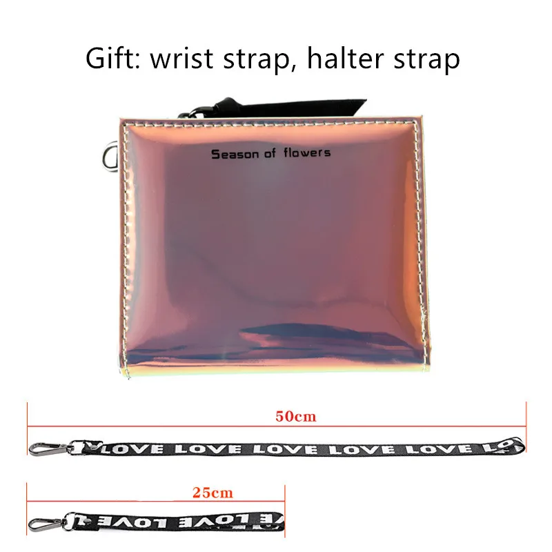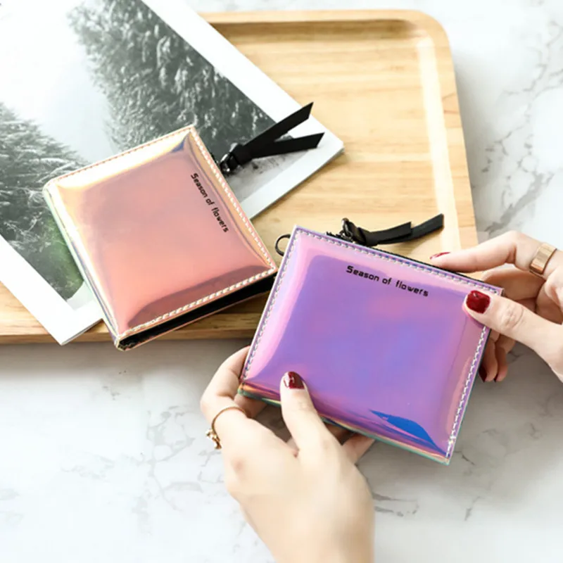 New Lanyard Laser Holographic Wallet Women Wallets Lady Short Purse Portfel Card Holder Women's Small Wallet Coin Purse Carteras