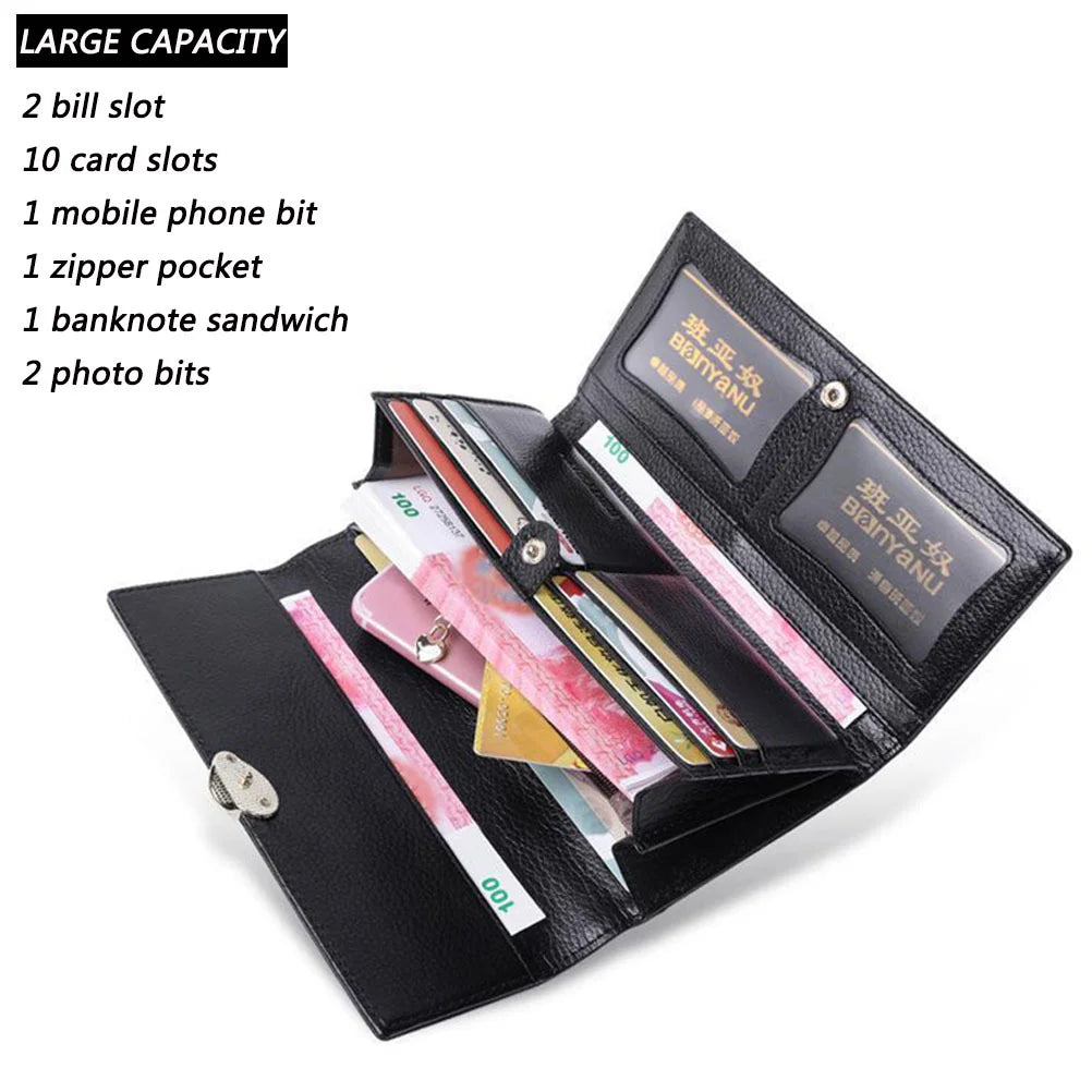 New Lychee Pattern Genuine Leather Wallet for Women Long Leather Leaf Women Wallet