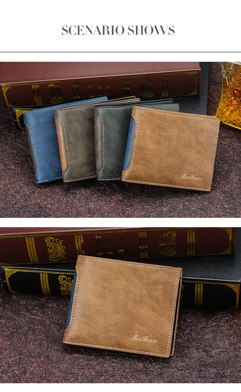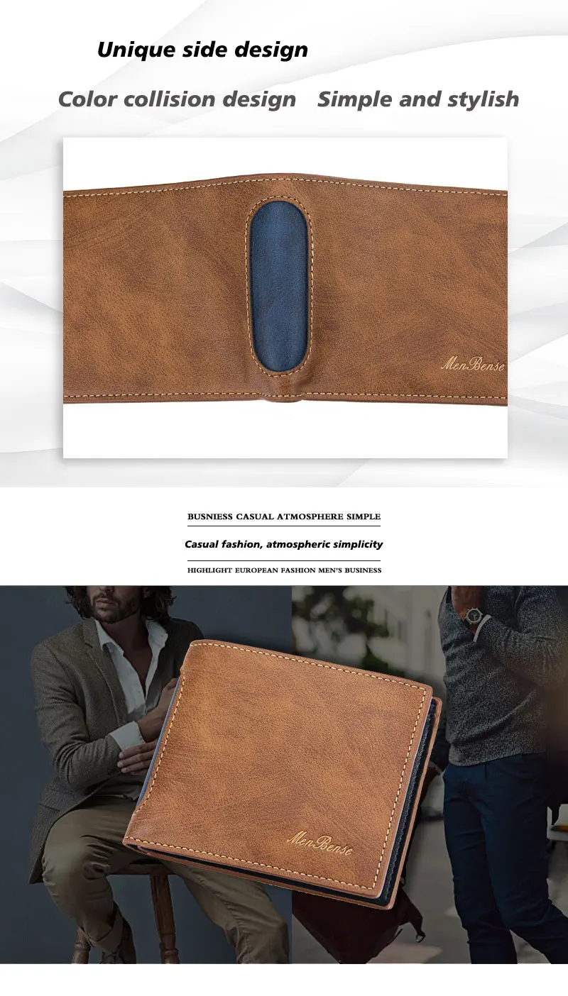 New men's wallet short fashionable casual spliced multi card slot three fold bag men's wallet business wallet