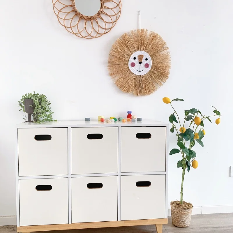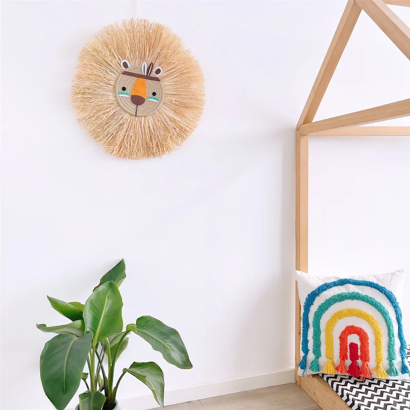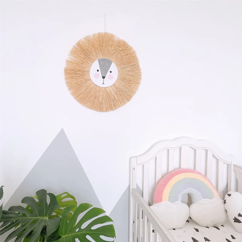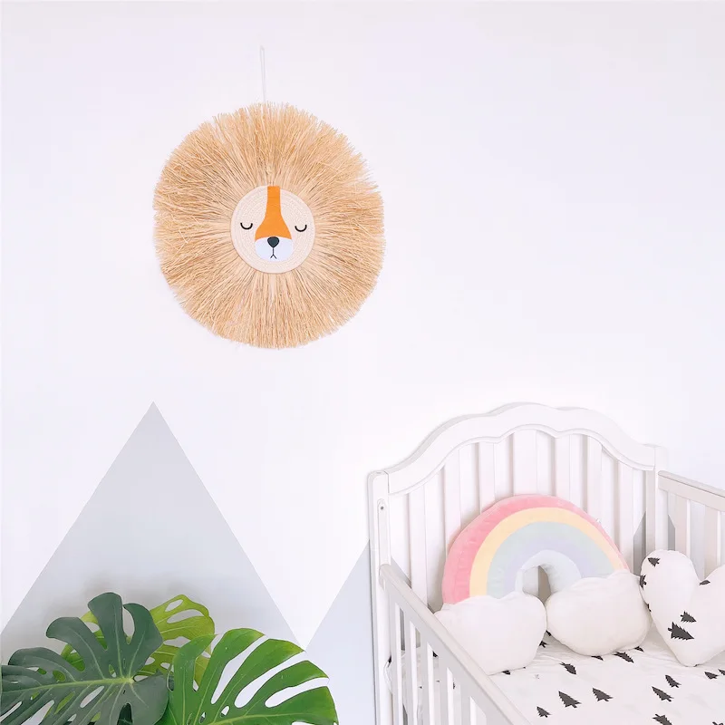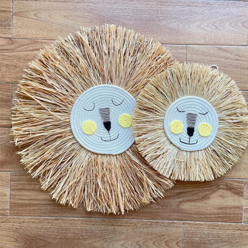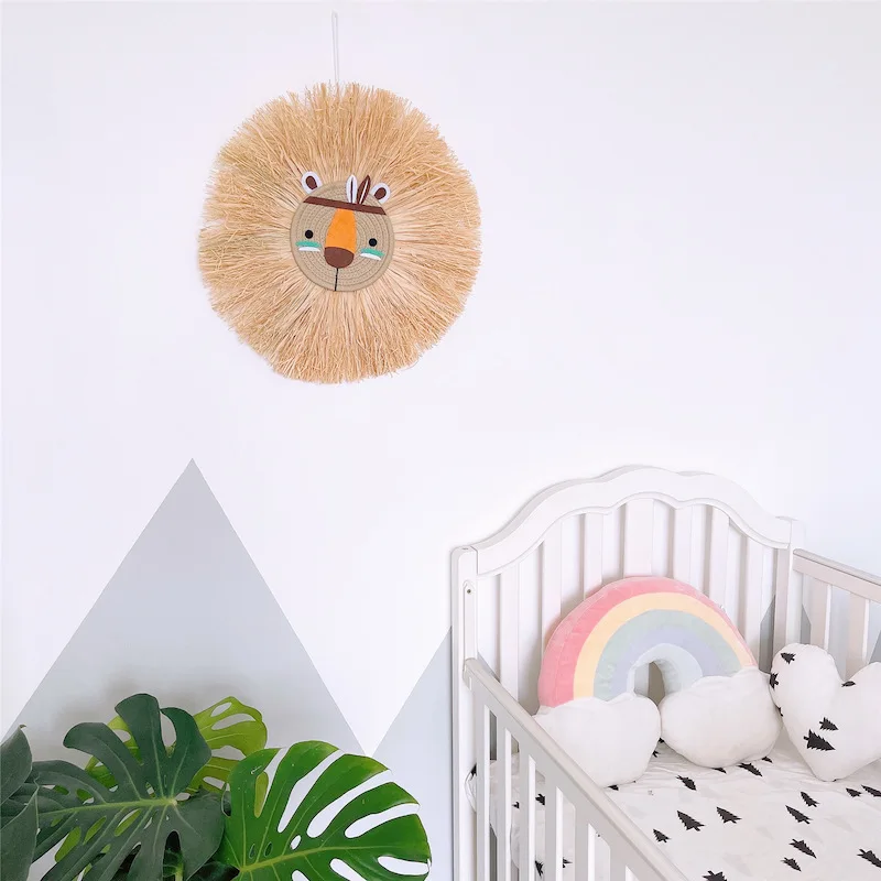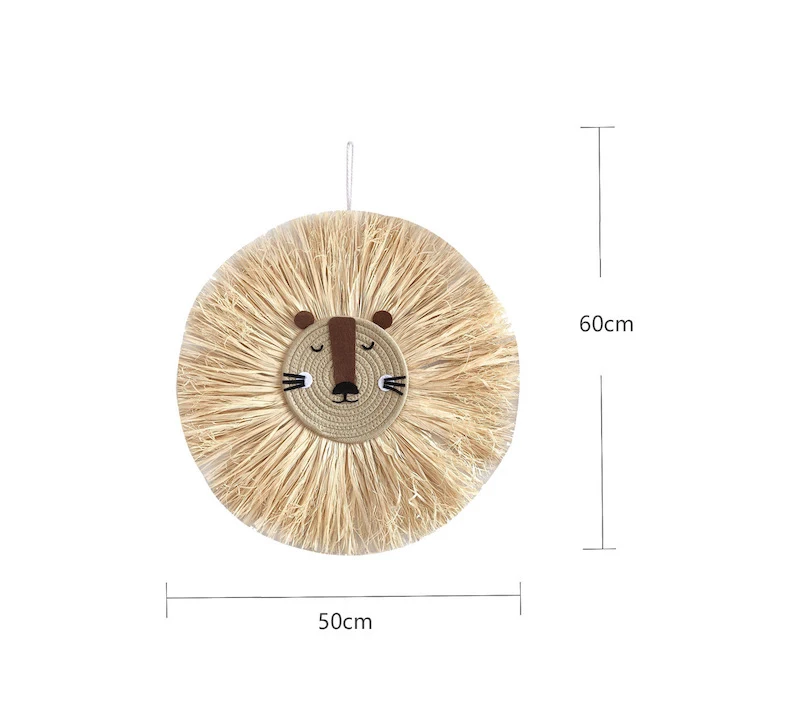 New Nordic Lion Head Hanging Decorations Cotton Thread Raffia Animal Head Ornament for Nursery Room Children Room Baby Kids Room