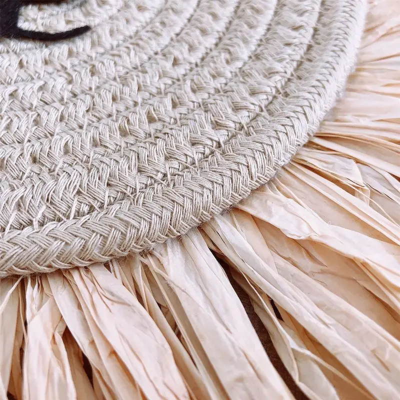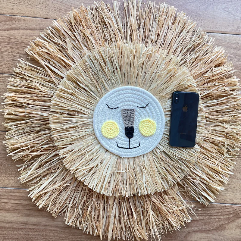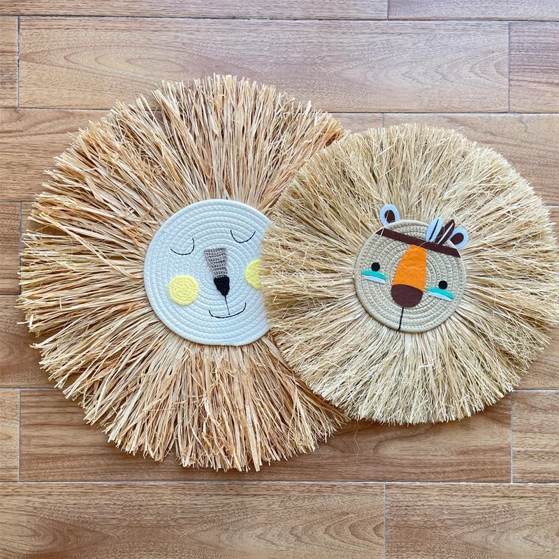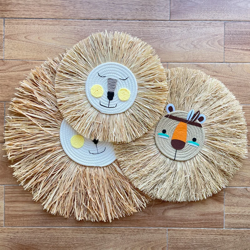 INS Nordic Handmade Indian Lion Head Hanging Decorations Cotton Thread Raffia Animal Head Ornament Children Room Baby Room Decoration