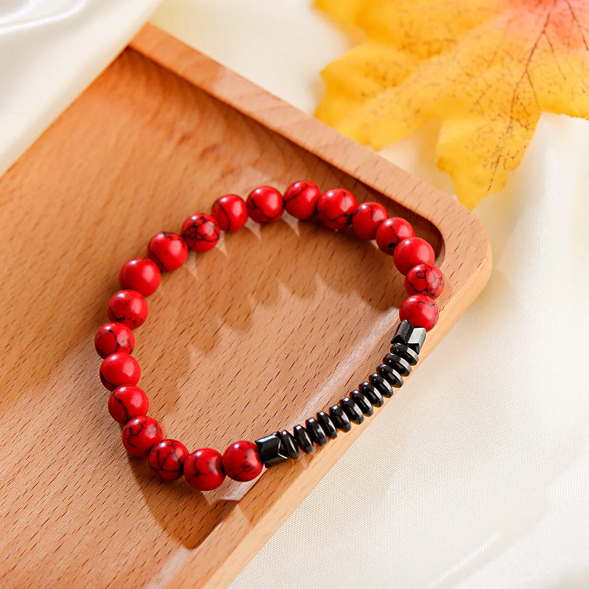 New Pink Natural Crystal Stone Stretch Bracelet Red Turquoises Beaded Men And Women Yoga Bracelet Jewelry Gift
