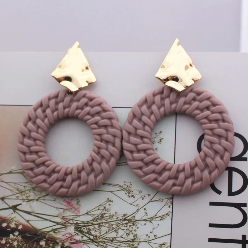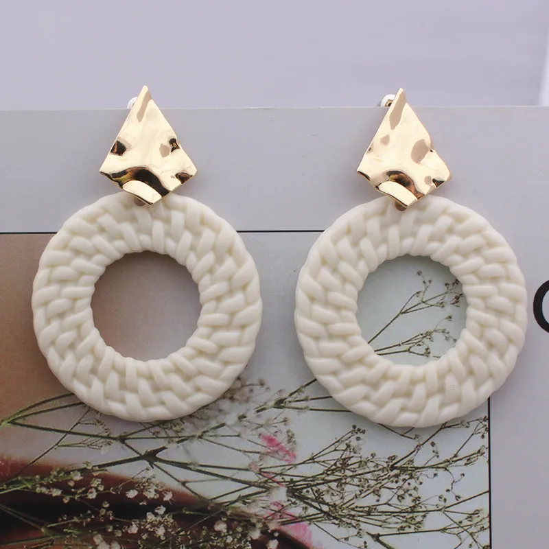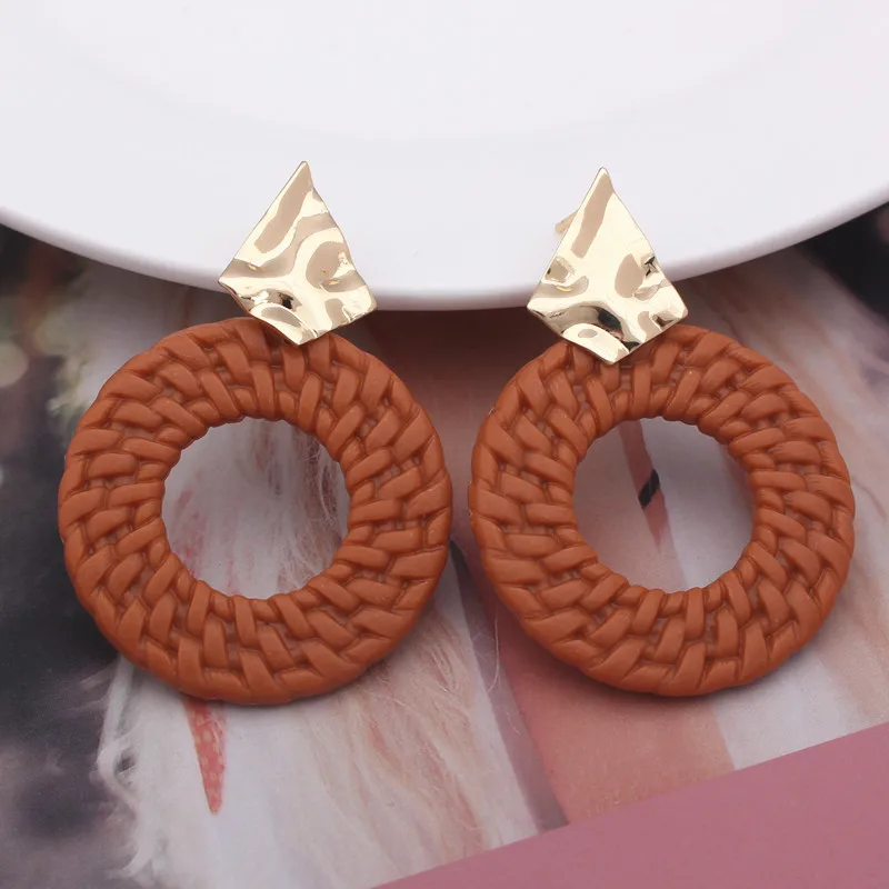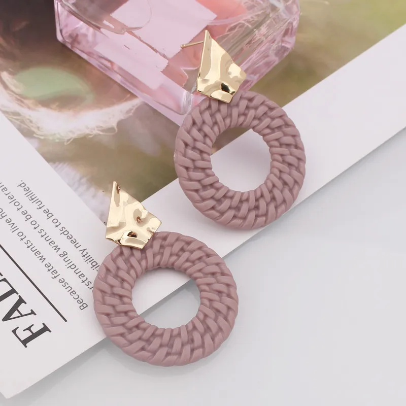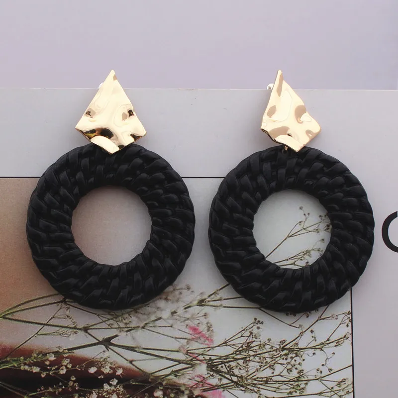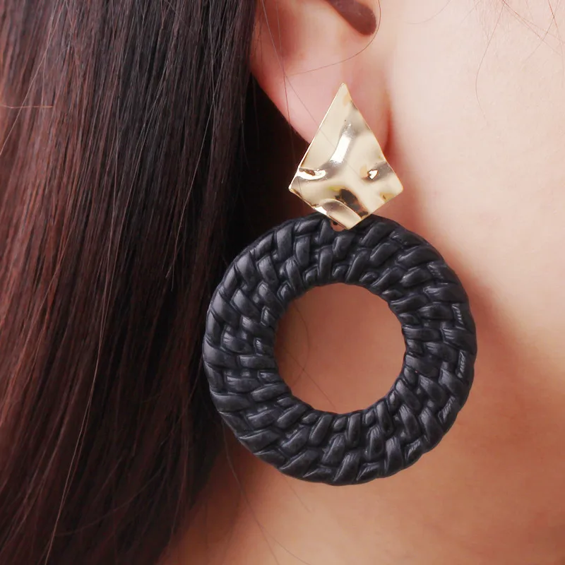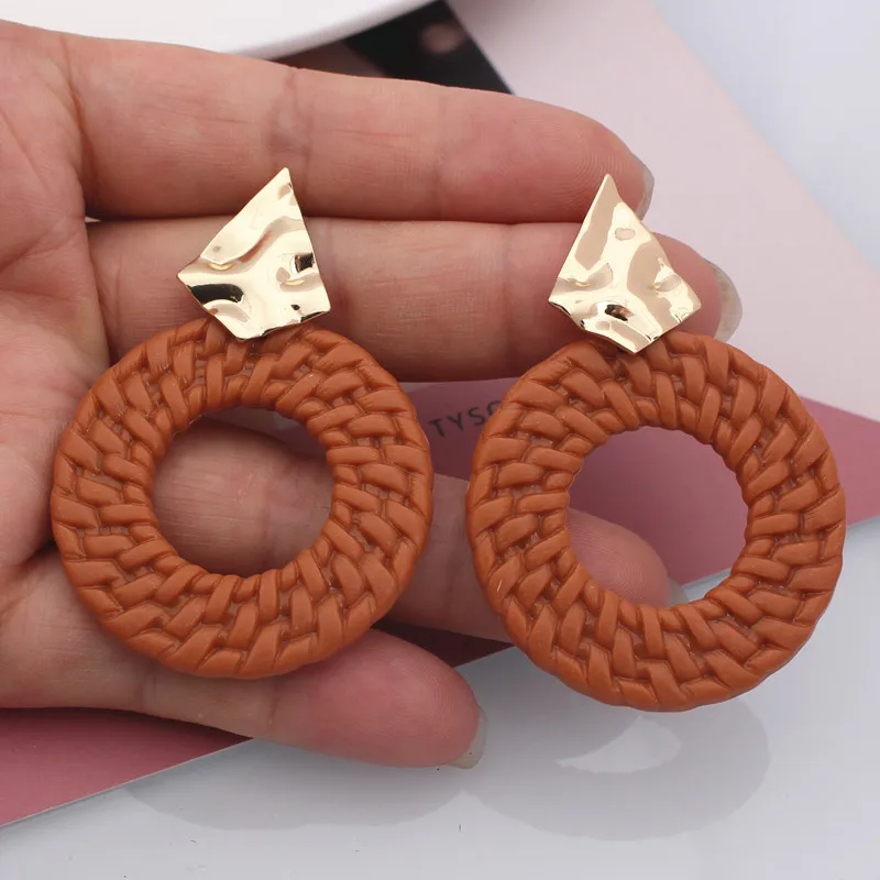New Trendy Geometric Round Drop Earring for Women Rattan Braid Big Circle Gold Color Metal Wedding Party Statement Jewelry Gift