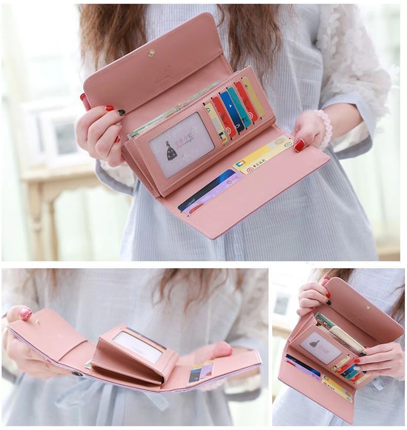 New Women's Wallet Fashion PU Leather Large Capacity Long Wallets Credit Card Holder Phone Coin Storage Girl's Handbag