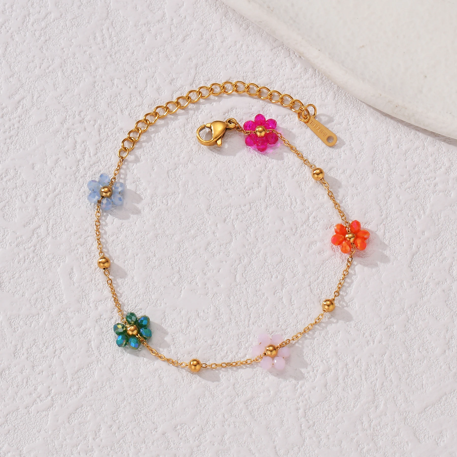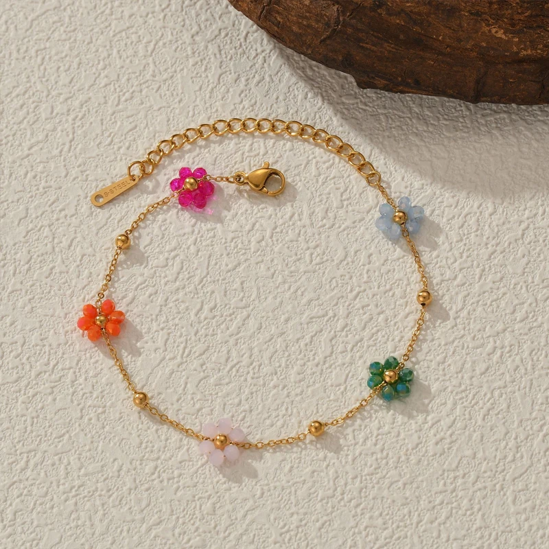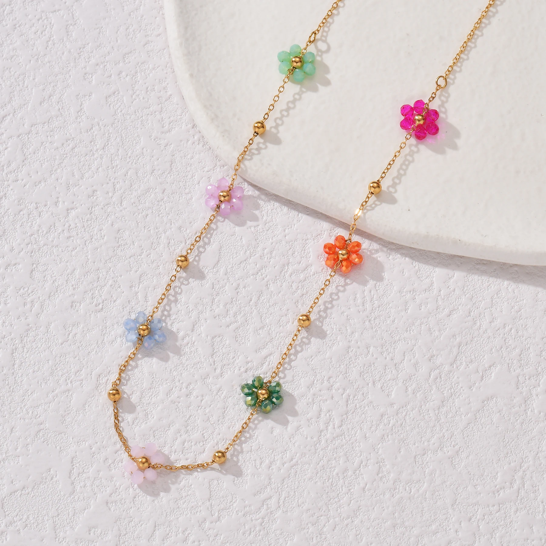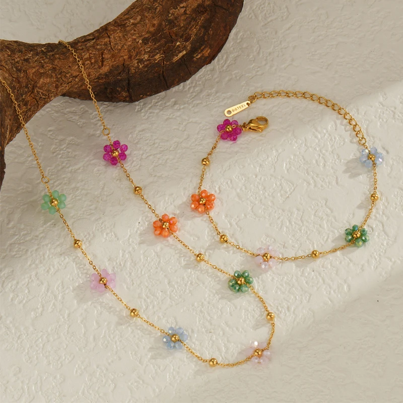 Nextvance Fashion Trendy Stainless Steel Steel Colorful Floral Chain Bracelet Necklace Set Waterproof Charm Jewelry Set For Wome