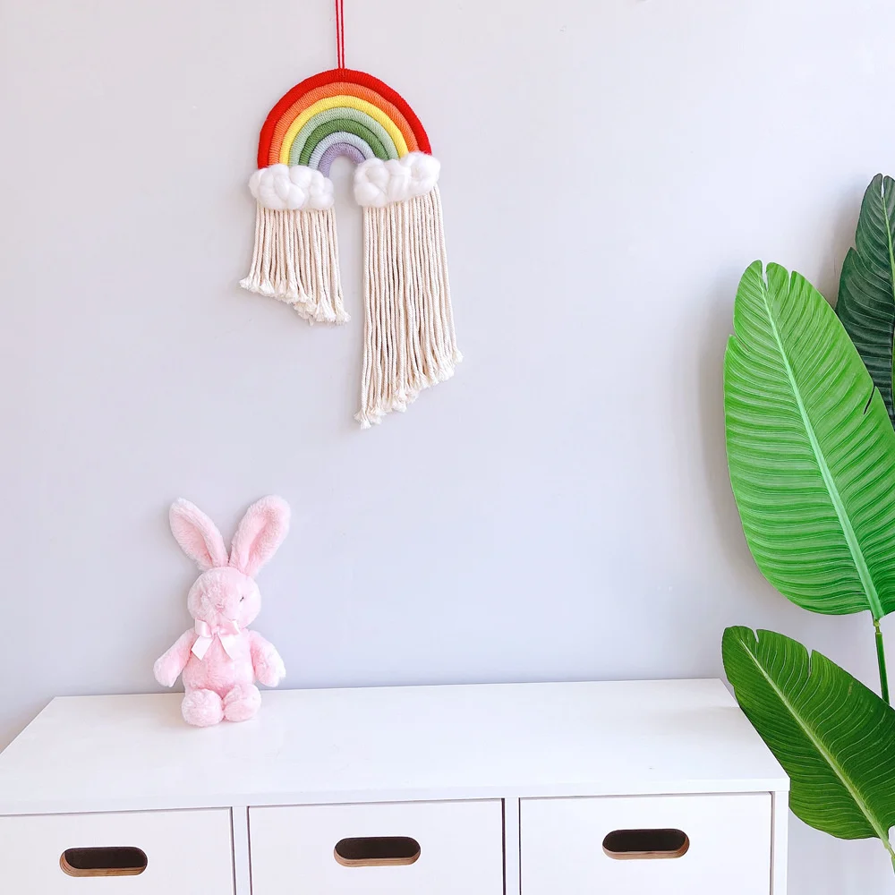 Nordic Kids Room Beads Garland Wall Decoration Handmade Rainbow Nursery Room Decor Hanging Decor Boys Girls Room Decor