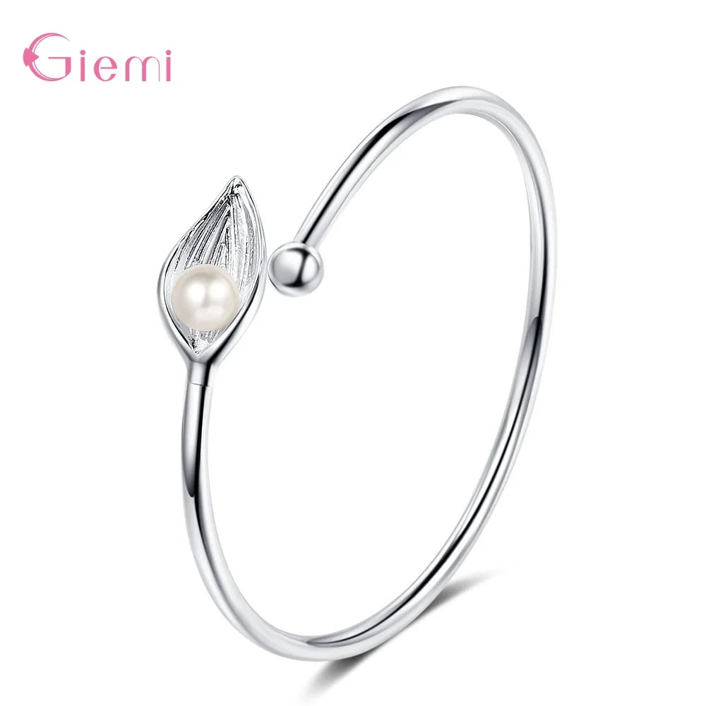 Open Adjustable Leaf Cuff Bracelets for Women Hot Sale 925 Sterling Silver Freshwater Pearl Bangles Gift Jewelry Wholesale