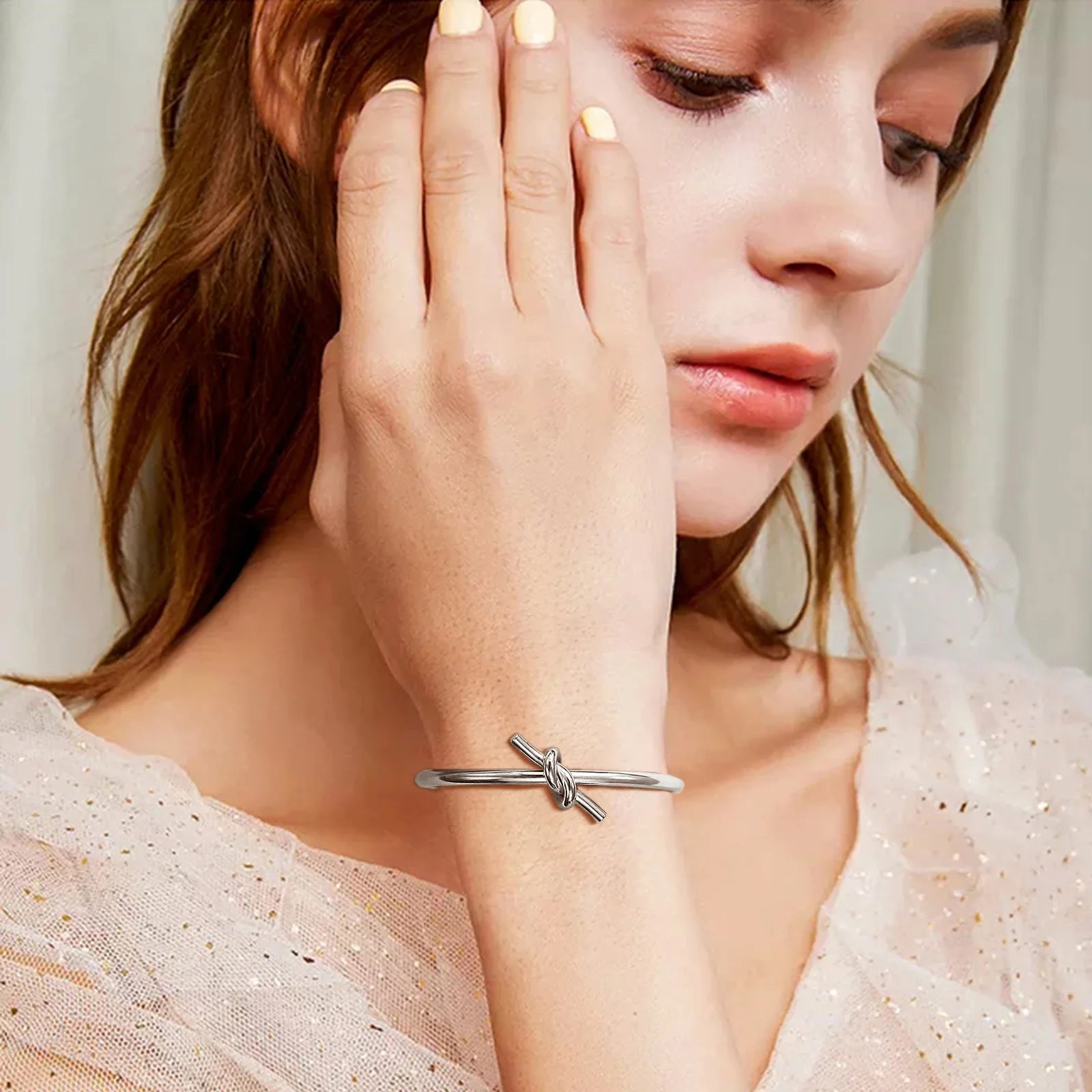 Open Knot Bracelets, Stainless Steel Cuff Bangle for Women, Minimalist Wrist Jewelry Gift