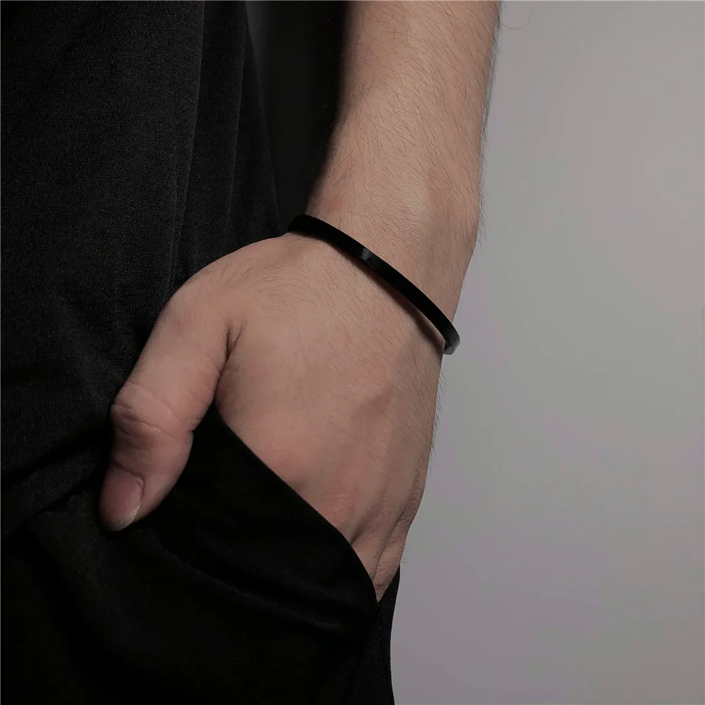 Opening Design Bracelet Bangle for Men Women Hip Hop Men Round Stainless Steel Bracelet & Bangles Jewelry Pulseira Feminia