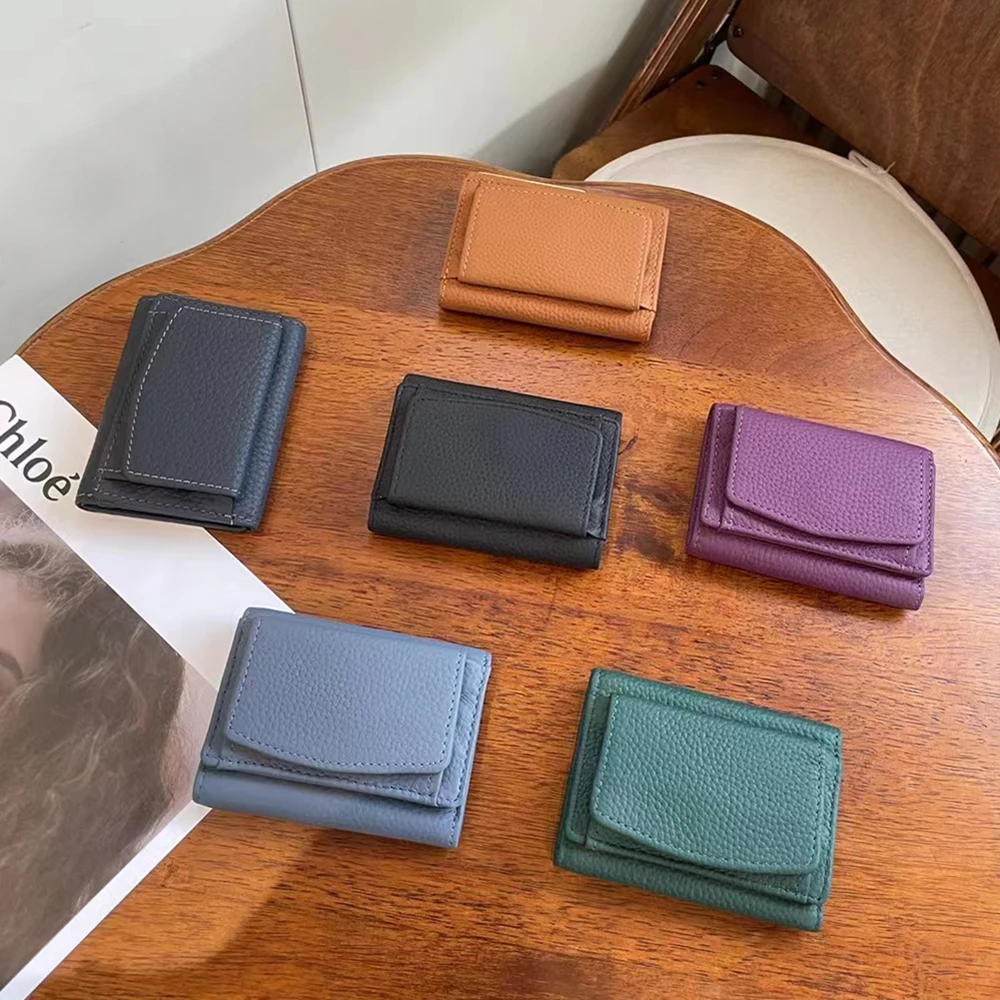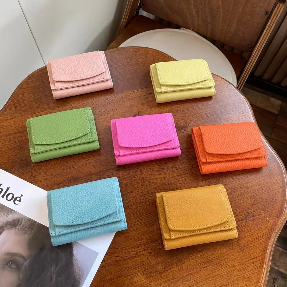 product: 2024 popular real cowhide leather small short coin purse wallet