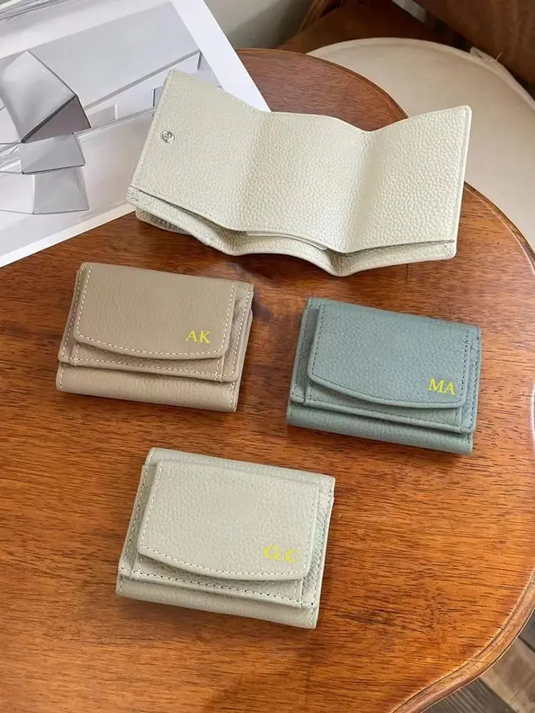 Personalize Small Women Wallet Custom Name Genuine Leather Female Coin Short Purse Fancy RFID Folded Lady Card Holder Money Bag