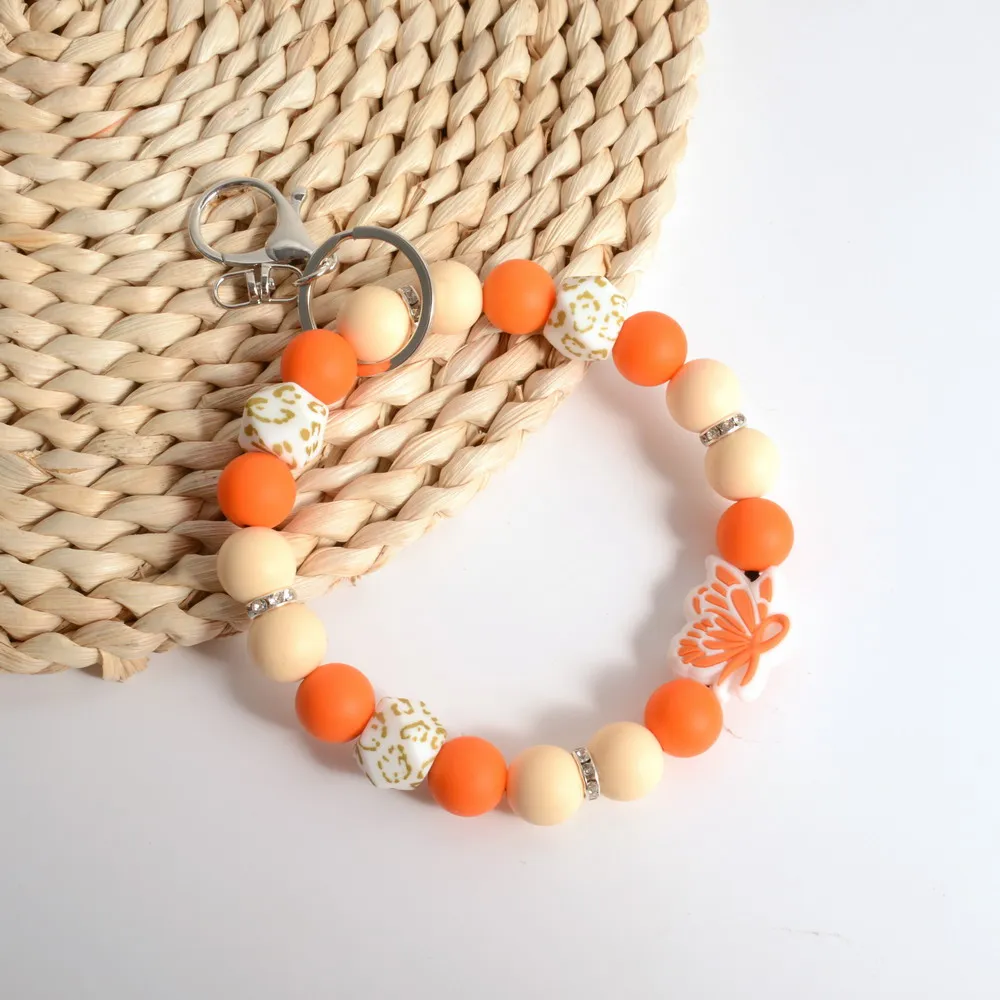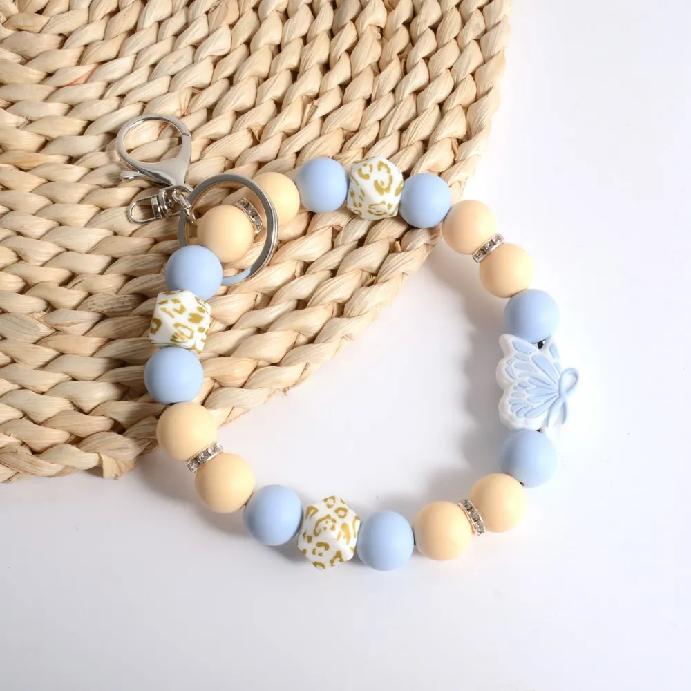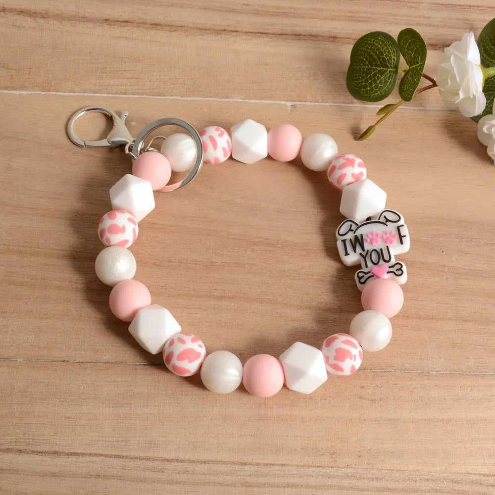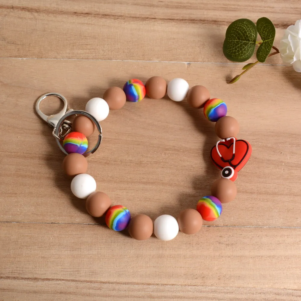 Personalized Bangle Silicone Bead stethoscope Stretch Wristlet bracelet Keychain with Keyring Gift for Teacher Mom Nurse Gift