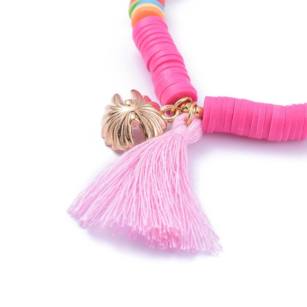 Pink Colour Polymer Clay Heishi Beads Stretch Bracelet